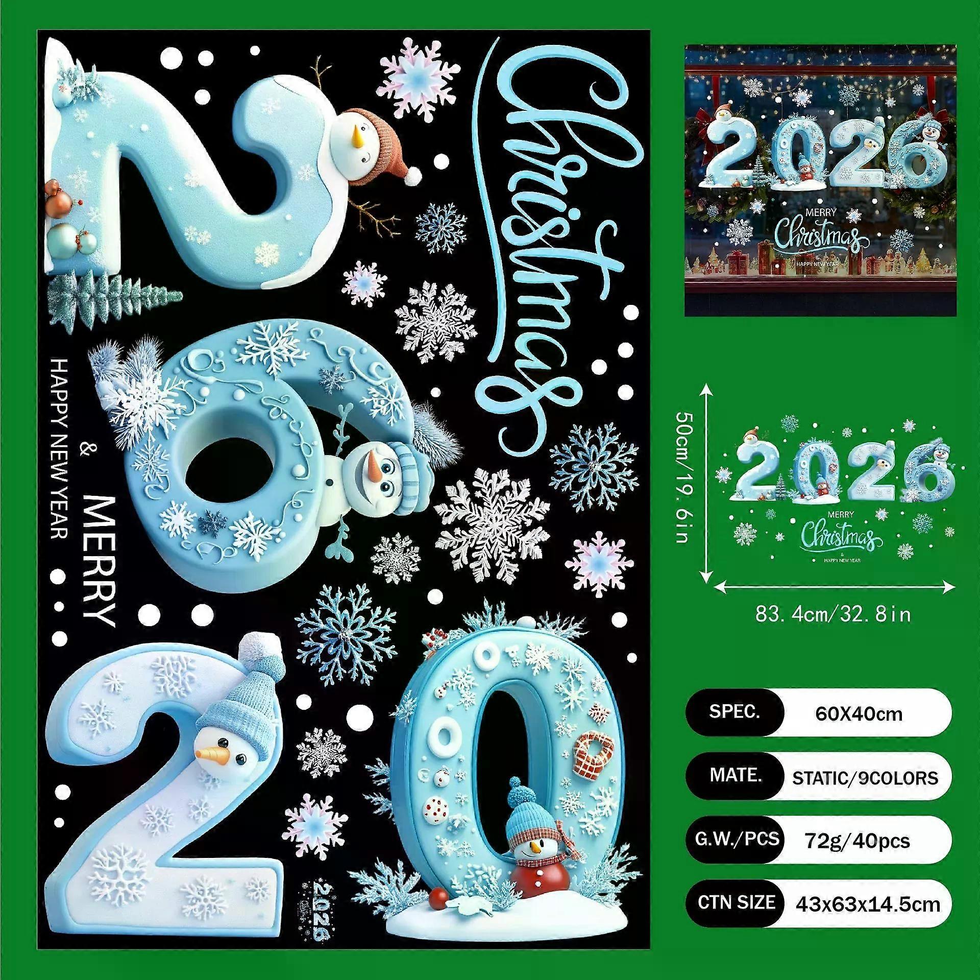 Ice Snow 2026 Christmas Glass Sticker Cartoon Snowman Snowflake Window Sticker Merry Christmas Decor Natal Happy New Year 2026