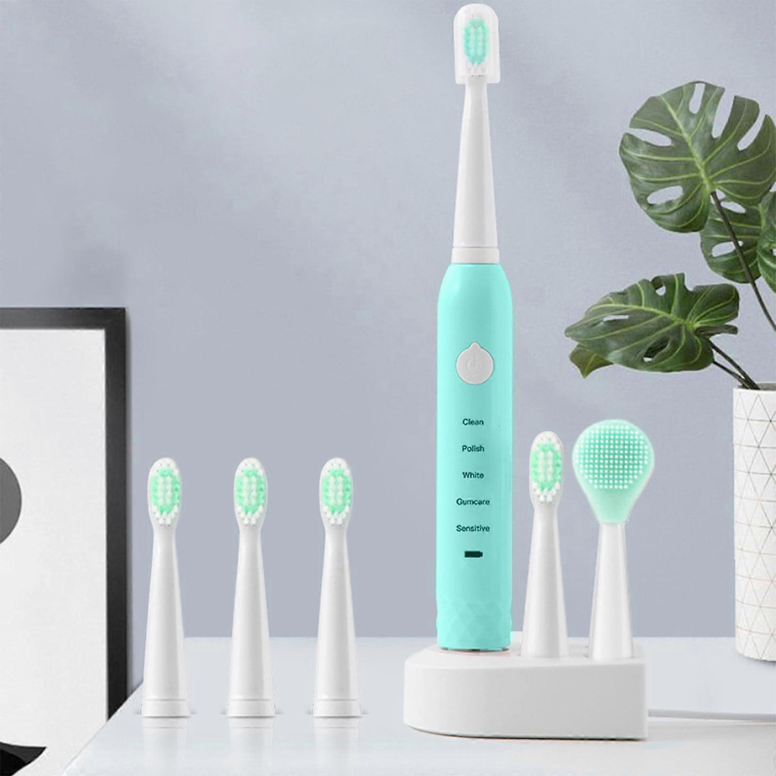 Electric Toothbrush with 3 Heads + Facial Brush, 5 Modes, 20-Speed Timer, IPX7 - Compatible with Smart Features, Birthday Gift for Her