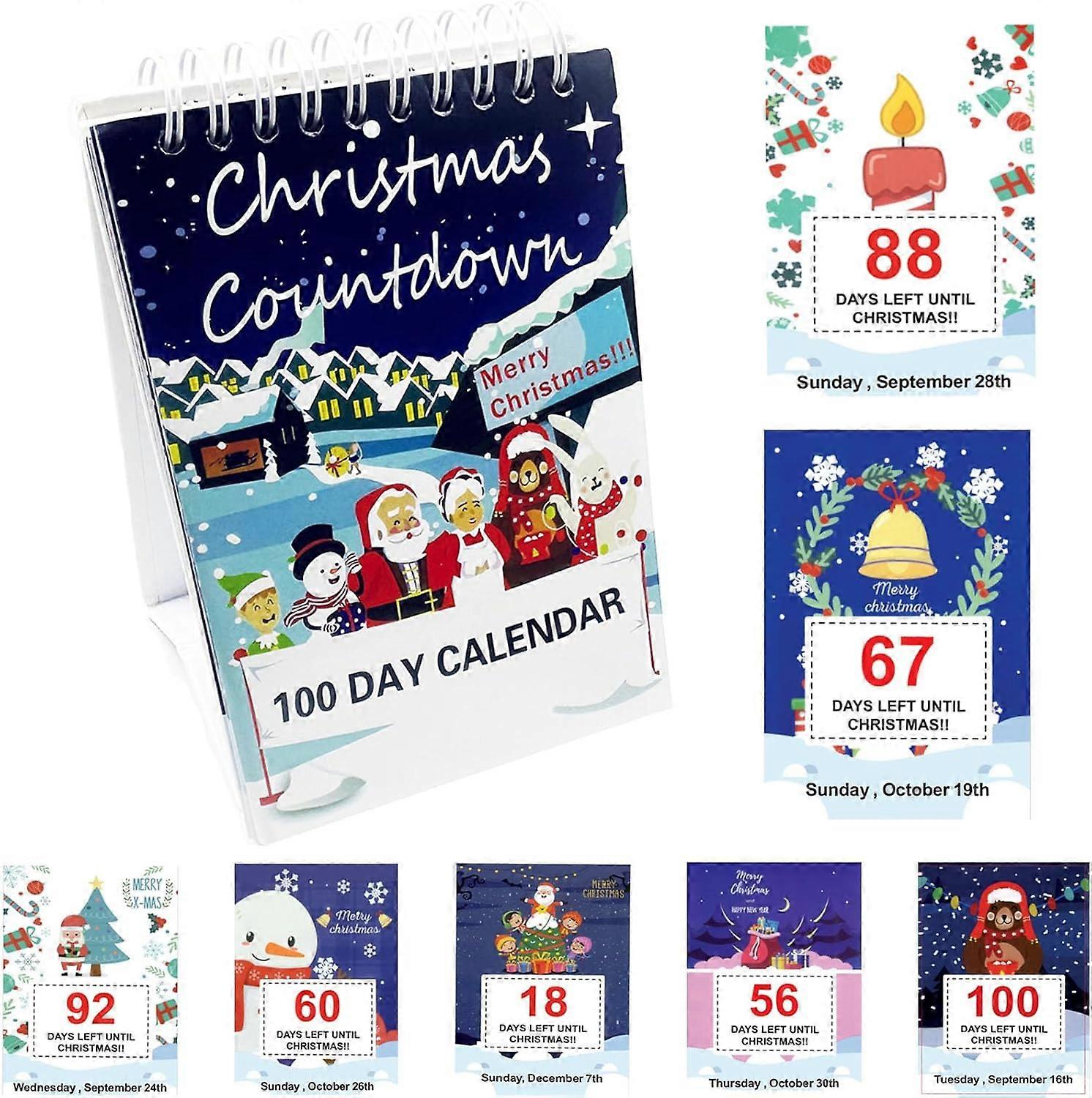 100 Day 2026 Festive Desktop Christmas Tear Off Countdown Desk Calendar