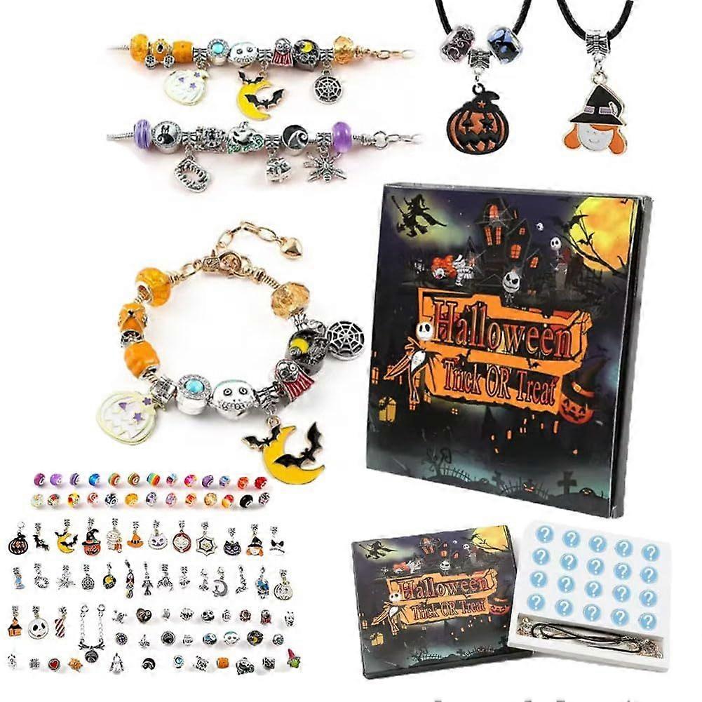 Halloween Charm Bracelet Kit, Adjustable Spooky Themed Jewelry with Pumpkin Spider Ghost Pendants, DIY Craft Gift for Teens and Adults, Assorted Style