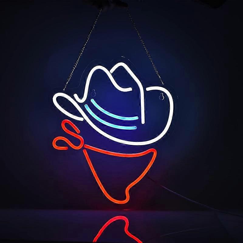 Cowboy Hat Neon Sign Beer Bar Home Art, Compatible with Man Cave Decor, Dimmable LED Neon Light for Bedroom, Office, Pub, 15x13 in