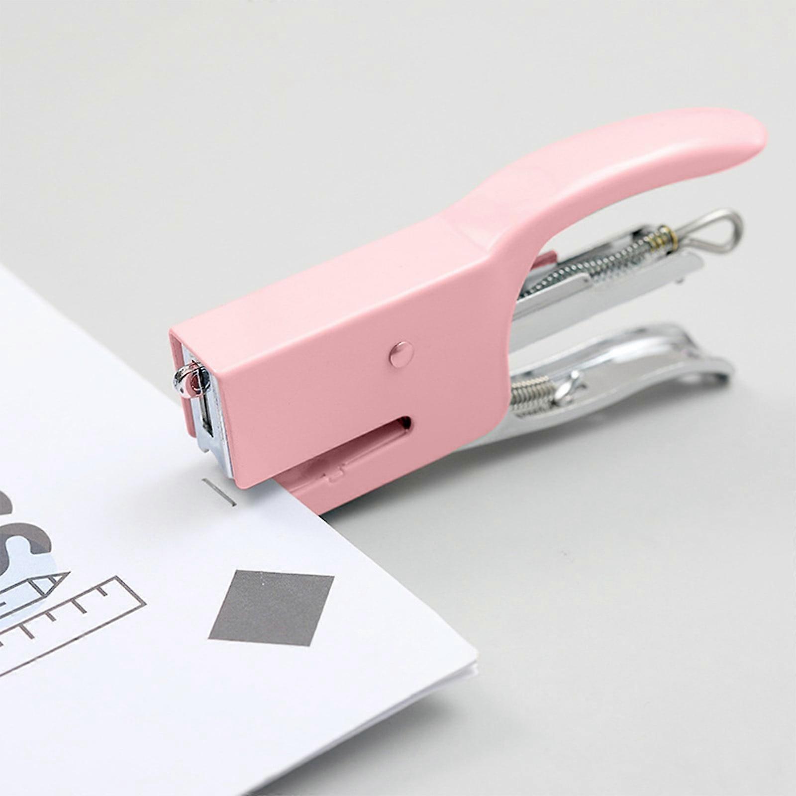 Qianying Mini Macaroon Coloured Plier Stapler with 750 Staples, Cute No.10 Manual Stapler for Office & Home (Pink)