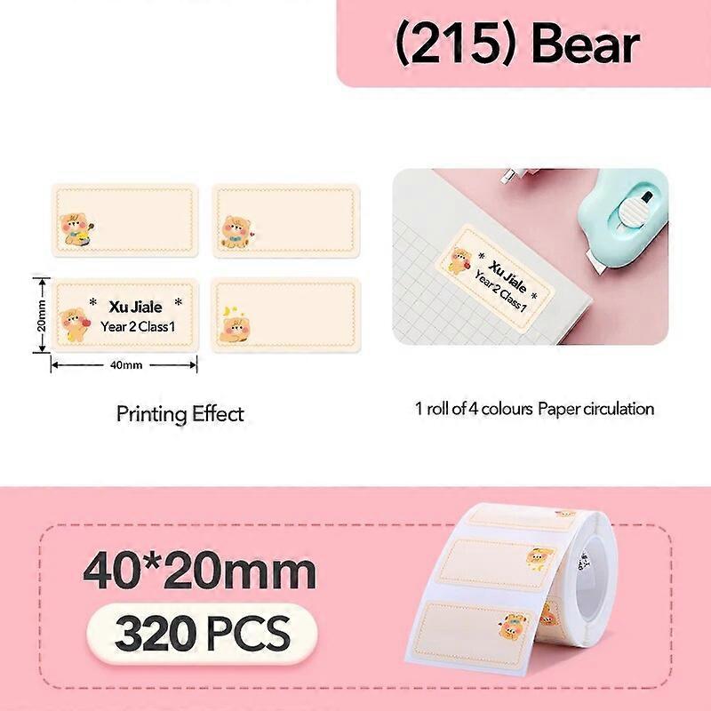 Niimbot Cartoon Pattern Thermal Label Sticker Paper Smart Portable Label Waterproof Stickers Fast Printing For B1/B21/B203/B3S 215-4020-Bear
