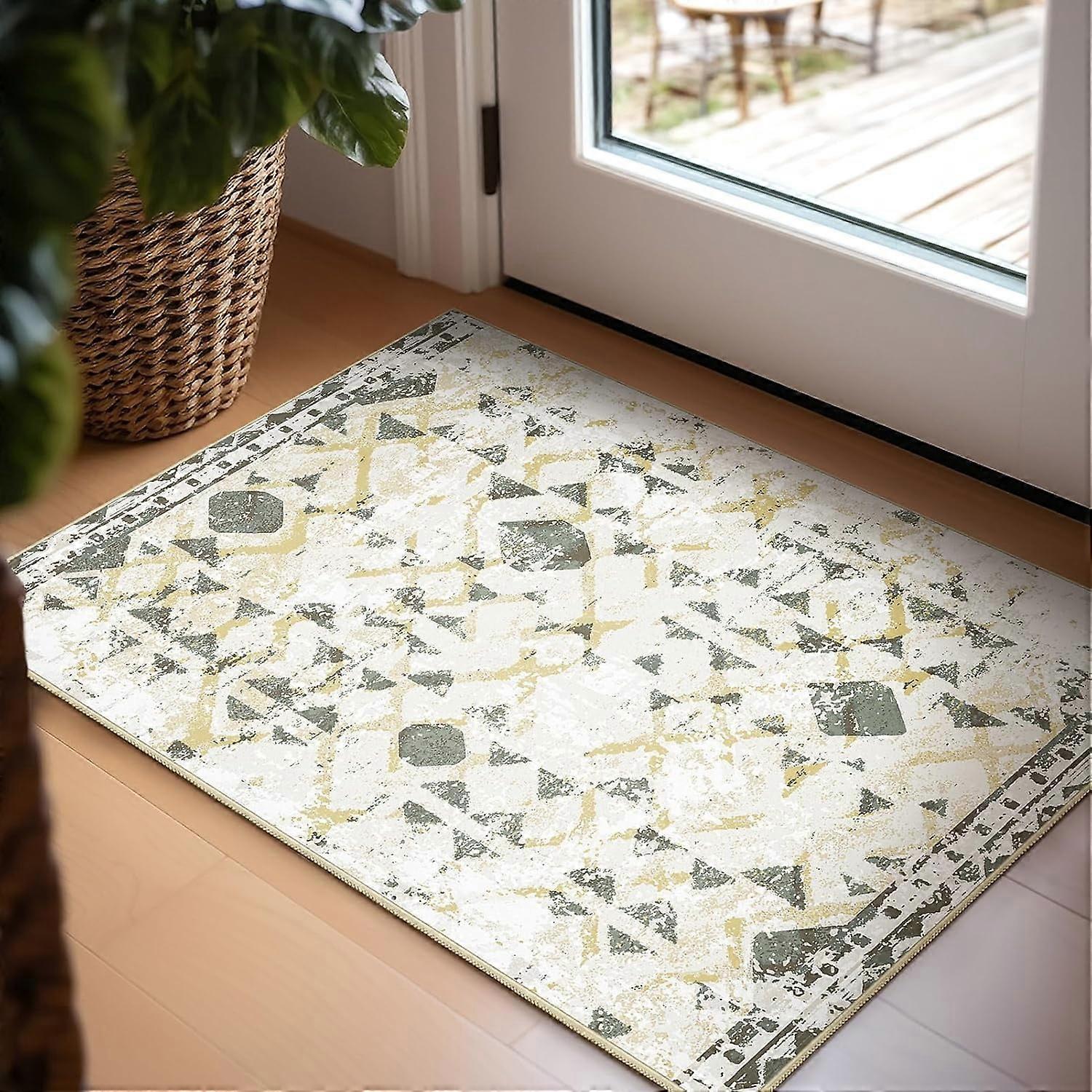Vintage Boho Area Rugs for Living Room, Machine Washable with Non-Slip Backing, Light Green 2x3 ft, Indoor Vintage Bohemian Home Decor Rug