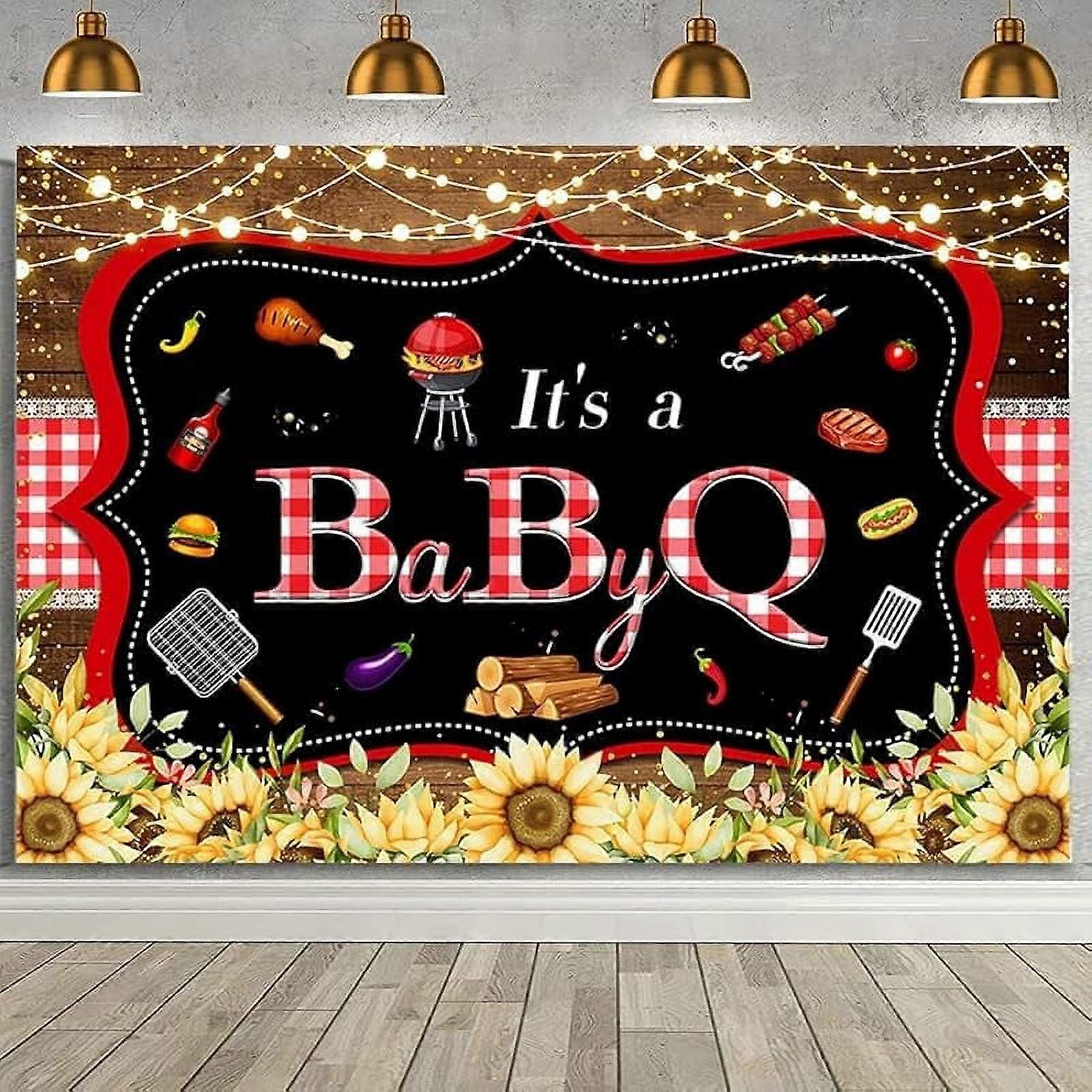 Custom 7x5ft BBQ Baby Shower Backdrop - It's a BabyQ Party Sunflower Decor, Rustic Wood & Sunflowers, Newborn Photo Background, 1st Birthday &