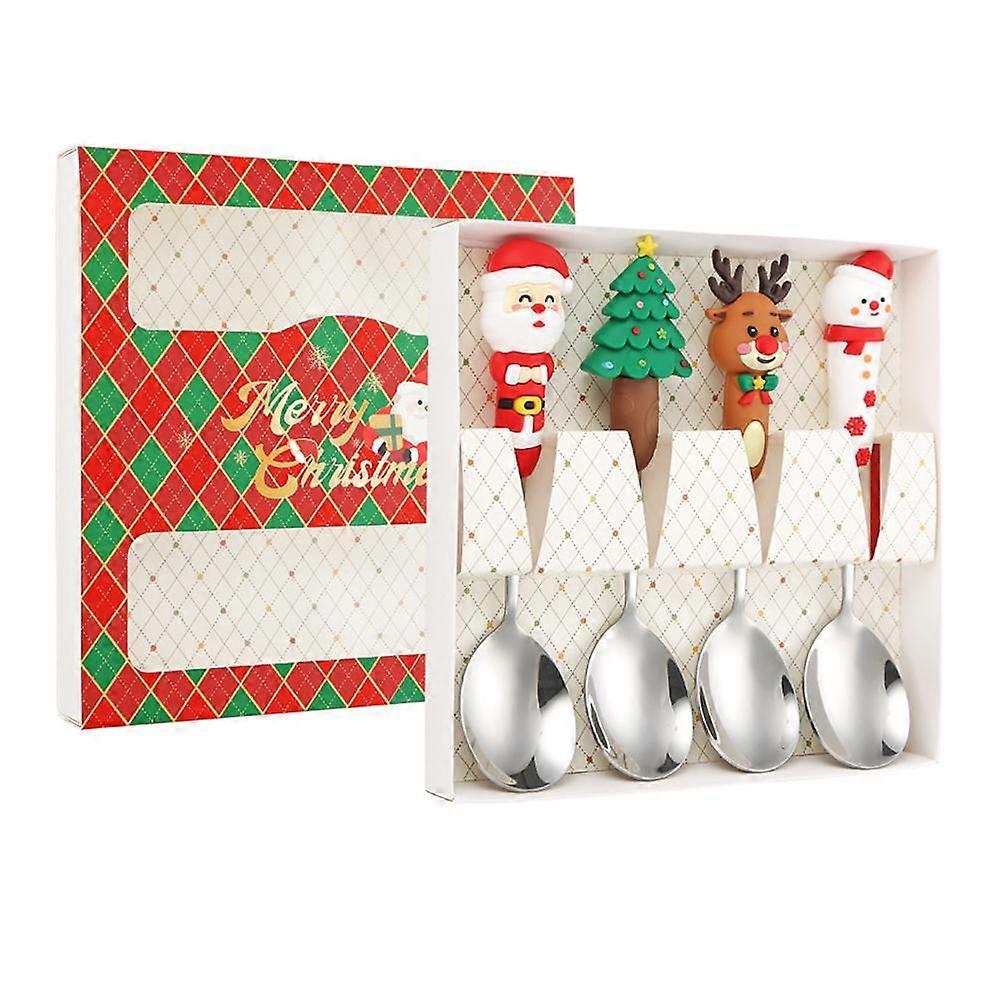 4Pcs Festival Spoon Forks Sets Creative Xmas Tree Santa Snowman Elk Cutlery