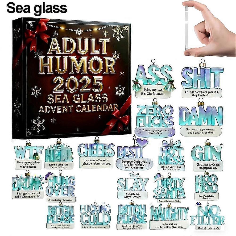 Materials: Sea glass, acrylic Size: 28*18*5cm / 11.03"*7.09"*1.97" Color: Blue 1. Unique sea glass-themed design with humorous adds a fun and artistic touch to the 2025 Christmas advent calendar. 2. Enjoy daily surprises with 24 or 25 small compartments carefully hidden with funny jokes, heartwarming quotes, or miniature decorations. 3. An ideal holiday gift for adults and teenagers, bringing laughter and warm memories. 4. Made of high-quality, safe materials, reusable, and both collectible and decorative. 5. Perfect for family interactions, office sharing, or as a gift for close friends, enhancing the holiday spirit and connecting with others. Package Includes: 1 product per package