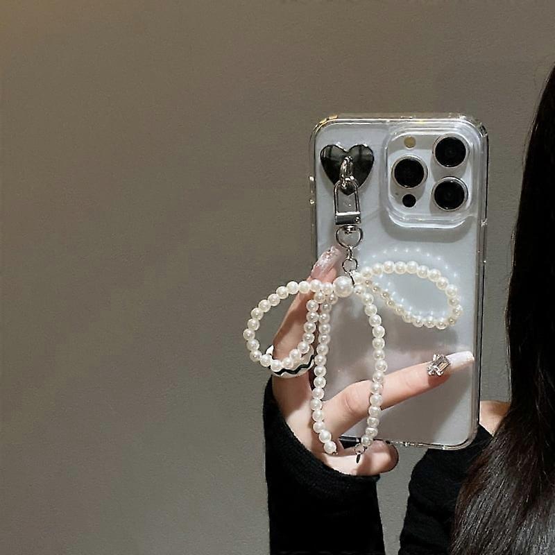 Transparent acrylic Pearl bow pendant phone case for compatible with iPhone 11 15 12 14 13 pro max 15 14 Pro shockproof protective hard cover