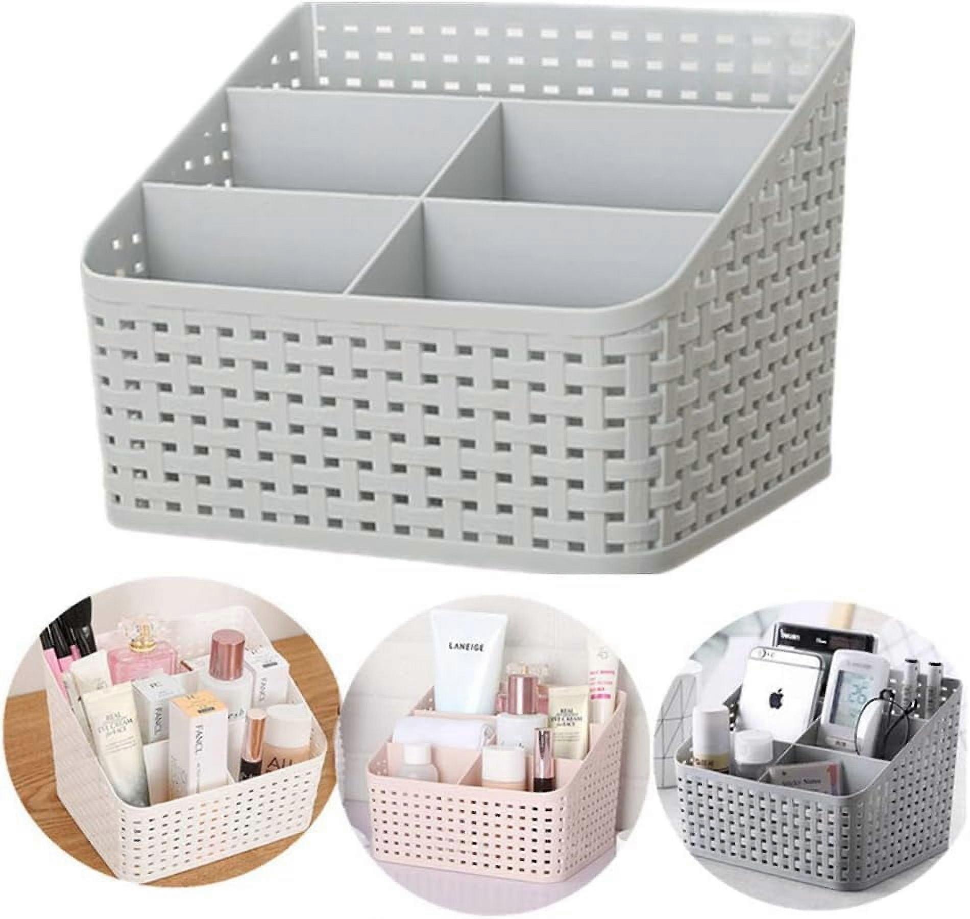 Plastic Desk Organizer, 5 Compartments Storage Organizer Utility Tote Caddy Holder Desktop Container Dividers for Home School Office Supplies (Grey)