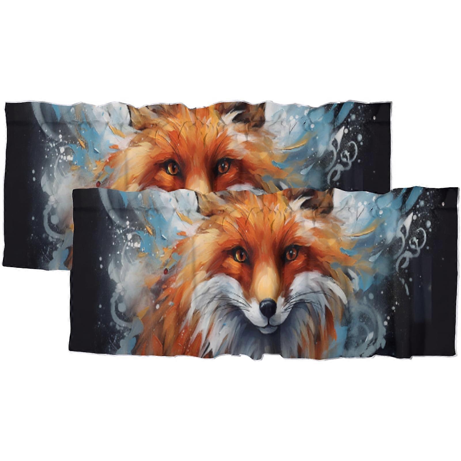 Red Fox Kitchen Valances 54x18inch (2Pcs) Winter Farmhouse Animal Watercolor Print Rod Pocket Window Curtain for Kitchen Bathroom Compatible with
