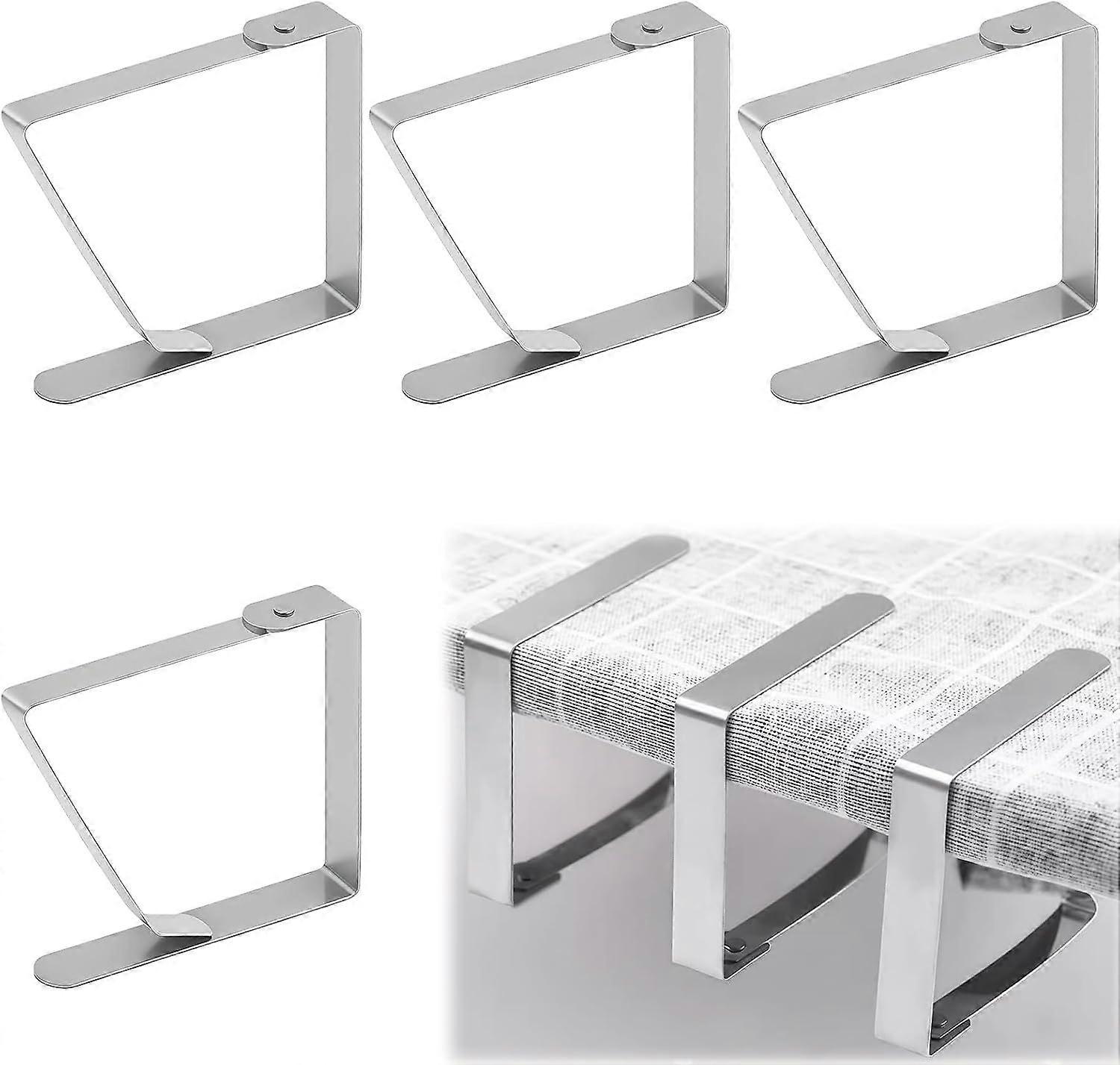 4 Pieces Stainless Steel Tablecloth Clips, Outdoor Tablecloth Clips, Outdoor Tablecloth Clips for 1-5.5 cm Garden Table, Restaurant Family Dining Tabl