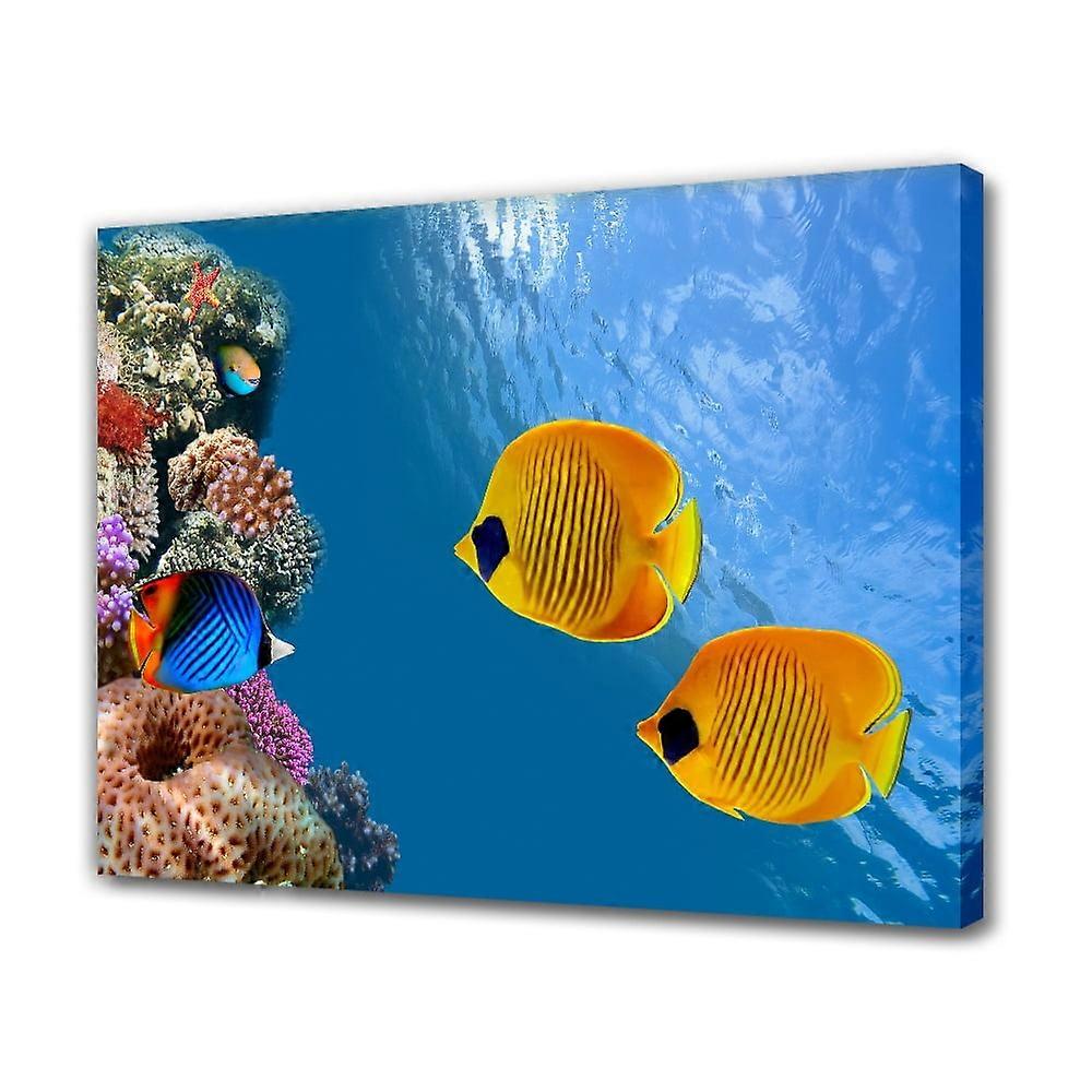 Colorful Underwater World Canvas Painting - Fish, Coral Sea Art Print, 16x24inch, Frame-style, Bedroom & Office Decor Gift