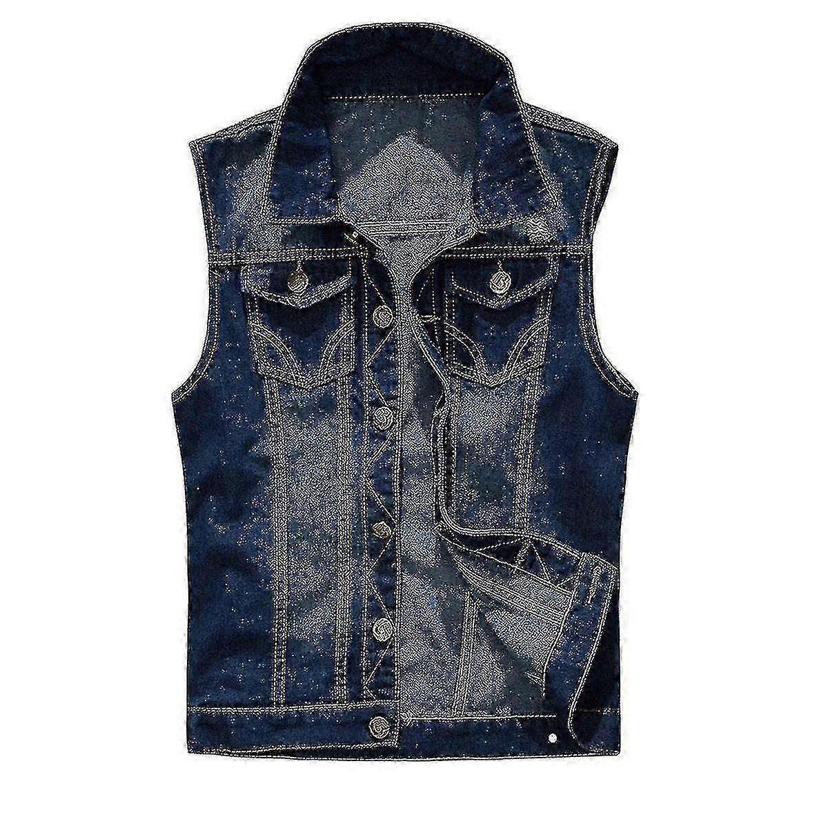 Mens Classic Denim Vest Ripped Golden Button Sleeveless Vest-Good