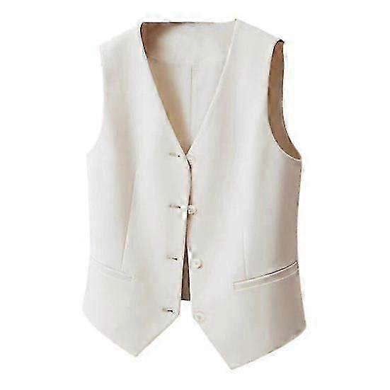 Women Vest Single-breasted Solid Color Sleeveless V Neck Slim Fit Formal Business Style-Yvan