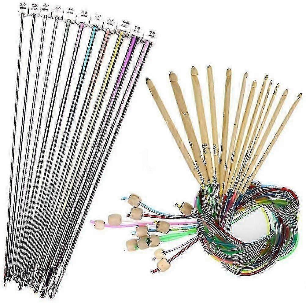 Tunisian Crochet Hooks Set - 23 Pieces 3-10mm - Bamboo Knitting Needle With Bead - Carbonized Bamboo Cable-Yvan