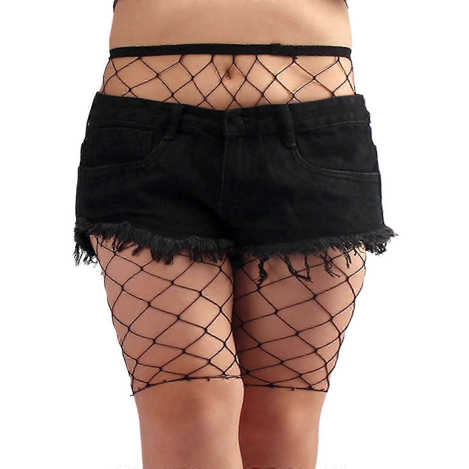 Women's Large Size Fishnet Black Biker Shorts High Waist Mesh Net Lingerie Short Tights Leggings See Through Cover Up-Good