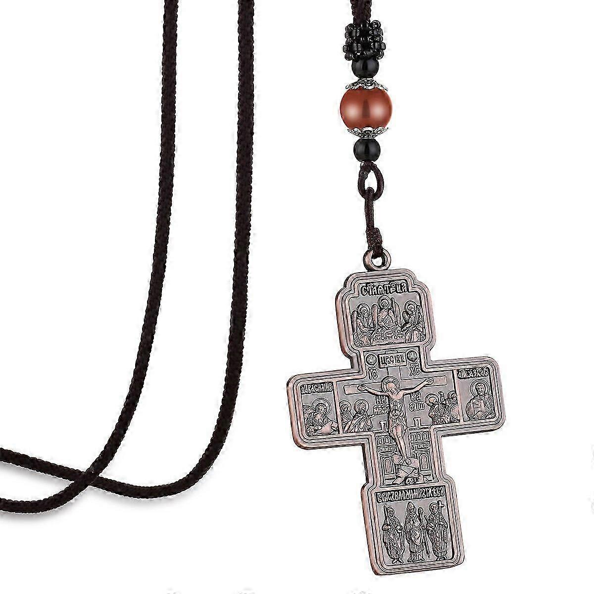 Russian Eastern Orthodox Pectoral Cross Necklace Crucifix Jesus Rope Chain Necklace Baptism Prayer Jewelry Gift for Men Women-Good