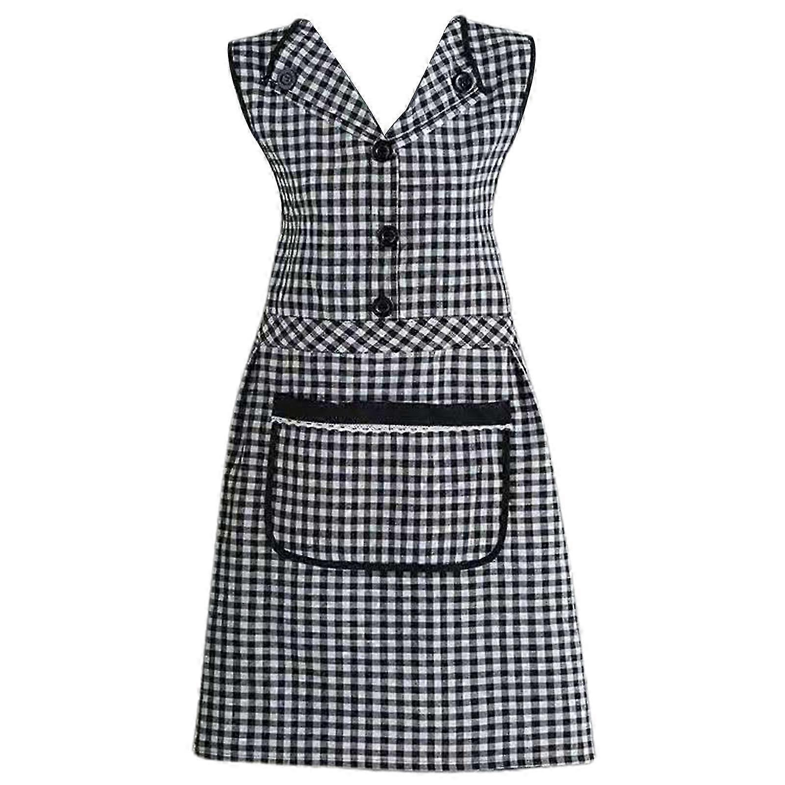 Plaid Cotton Linen Kitchen Apron with 5 Buckles, Large Pocket, Oil-Proof Anti-Greasy Cooking Overalls for Dining