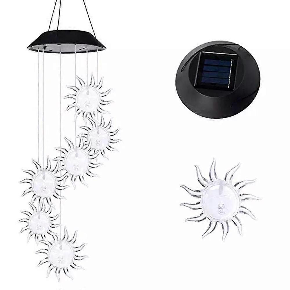 1、Solar Power Supply: solar sunflower wind chime light can auto charge for 6-8h under direct sunshine during day time, glow lasting up to 8h at night (keep switch in \"on\"). 2、Colorful Sun Flower Wind Chime: in the dark, LED light will automatically light up, change color of light from one to the next gently softly, give a very nice visual experience. 3、Atmosphere Chime Light: wind chime with beautiful twinkle light, will accompany you, give a feel of ease, comfort at alone night, but add warm ambience on lively night. 4、Good Material: IP65 waterproof solar chime light, made of good quality plastic, sturdy durable structure, withstands rains or sunlights, with no fade, no deform. 5、Indoor \u0026 Outdoor Decor: lovely, vivid sun flower wind chime string light is very easy to hang anywhere, suitable to decorate patio, backyard, garden, lawn, etc. Features: Solar Power Supply: solar sunflower wind chime light can auto charge for 6-8h under direct sunshine during day time, glow lasting up to 8h at night (keep switch in "on"). Colorful Sun Flower Wind Chime: in the dark, LED light will automatically light up, change color of light from one to the next gently softly, give a very nice visual experience. Atmosphere Chime Light: wind chime with beautiful twinkle light, will accompany you, give a feel of ease, comfort at alone night, but add warm ambience on lively night. Good Material: IP65 waterproof solar chime light, made of good quality plastic, sturdy durable structure, withstands rains or sunlights, with no fade, no deform. Indoor & Outdoor Decor: lovely, vivid sun flower wind chime string light is very easy to hang anywhere, suitable to decorate patio, backyard, garden, lawn, etc. Specifications: Material: Plastic Main Color: Black & Transparent Battery: 600mAh NiMH Battery Charging Time: About 6-8h Working Time: Max 8h Item Size: 66*12.5*12.5cm / 25.98*4.92*4.92in Item Weight: 272g / 9.59oz Package Size: 13*9.5*9.5cm / 5.11*3.74*3.74in Package Weight: 290g / 10.22oz Note: Solar wind chime light only, others in pictures are not included. Due to manual measurement, there may be deviation. Due to lights or others, it may slightly differ from pictures. Packing List: 1 * Solar Wind Chime Light 1 * Solar Wind Chime Light