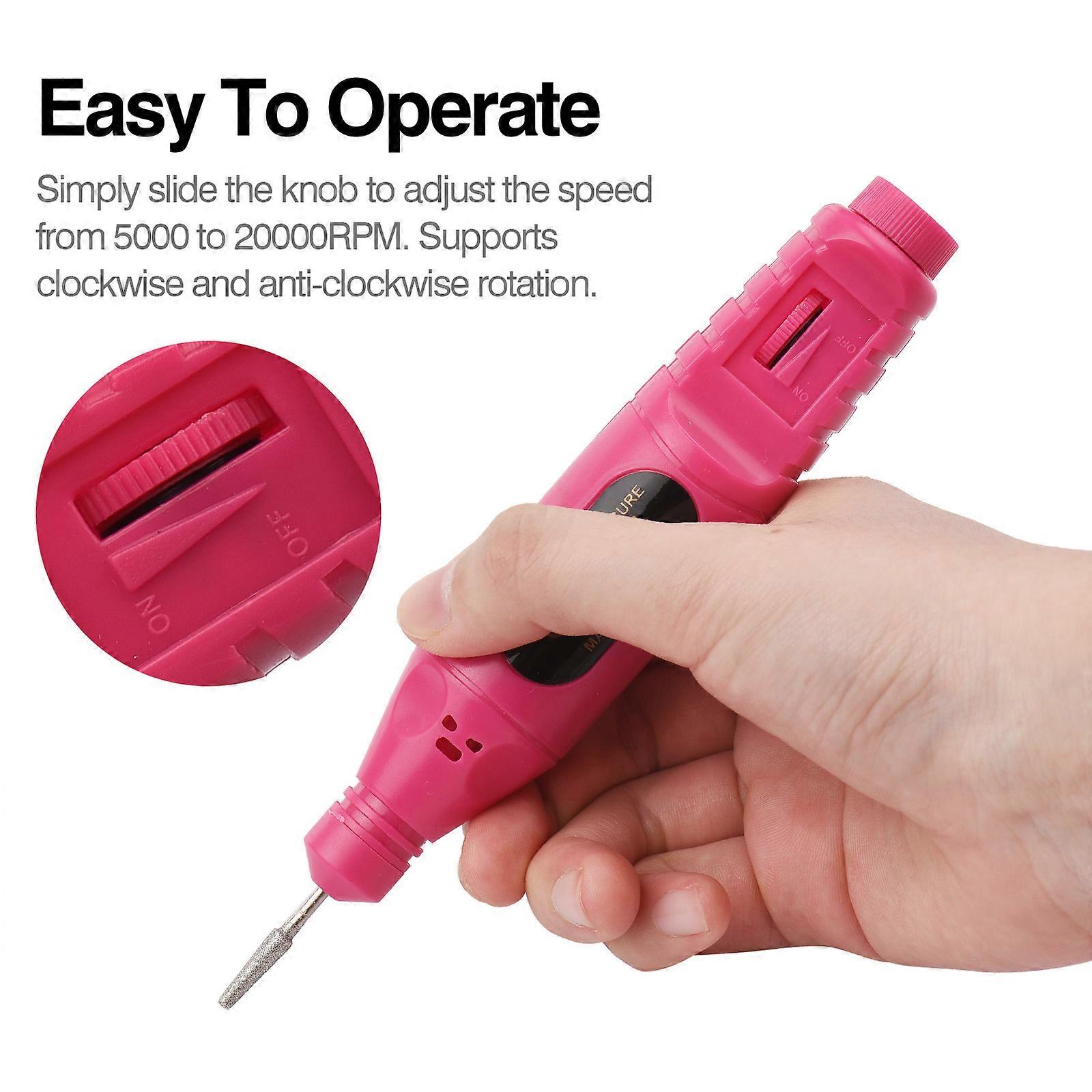 Electric Polish Kit 20000 RPM USB Rechargeable 500mAh Nail Pen Manicure Pedicure Machine with 6 Drill Bits for Home Salon Use