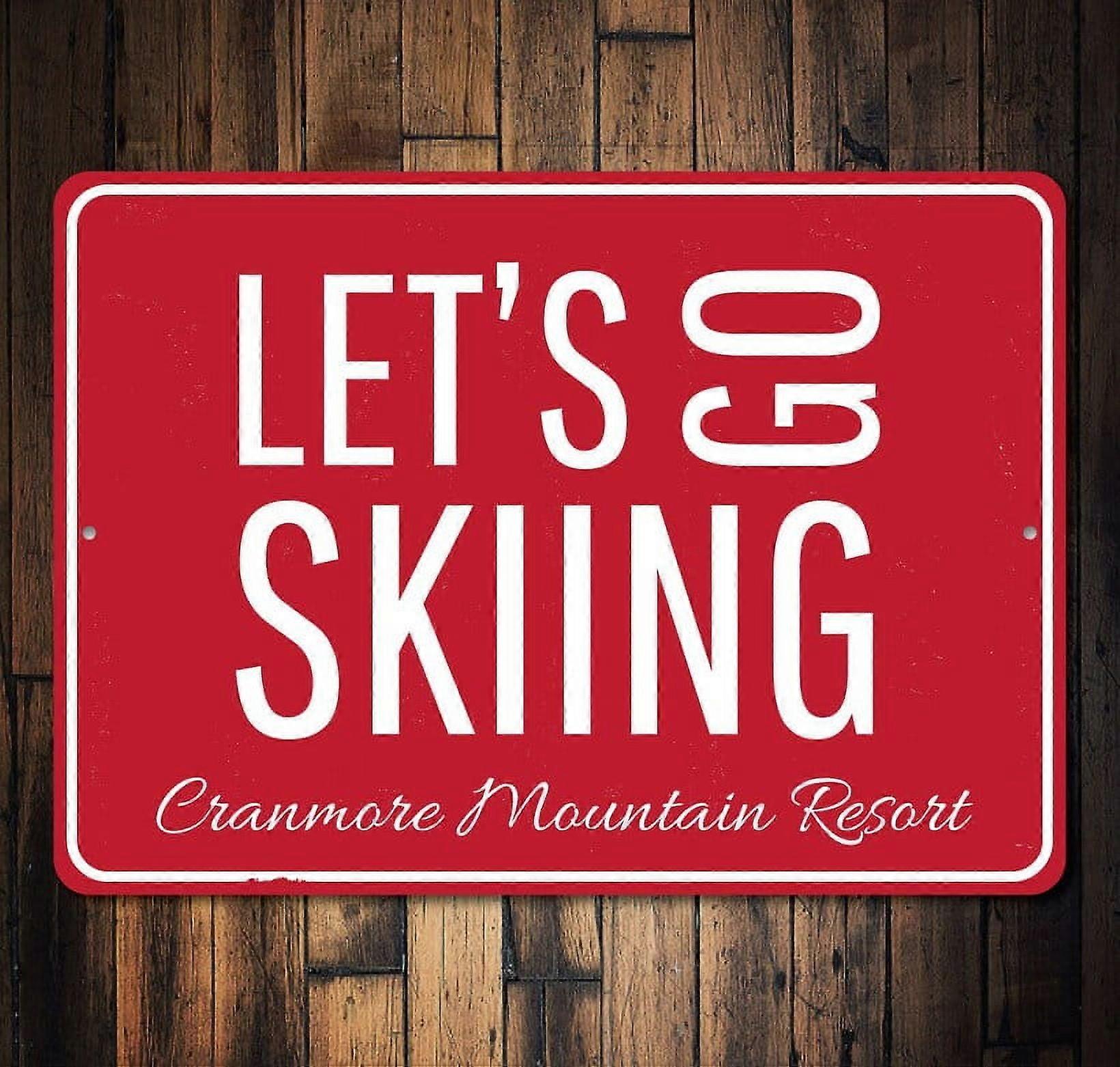 Let's Go Skiing Sign Skier Mountain Resort Name Metal Decor Skiing Ski Lover Gift Novelty Skiing Decoration Size: 8 x 12 Inch
