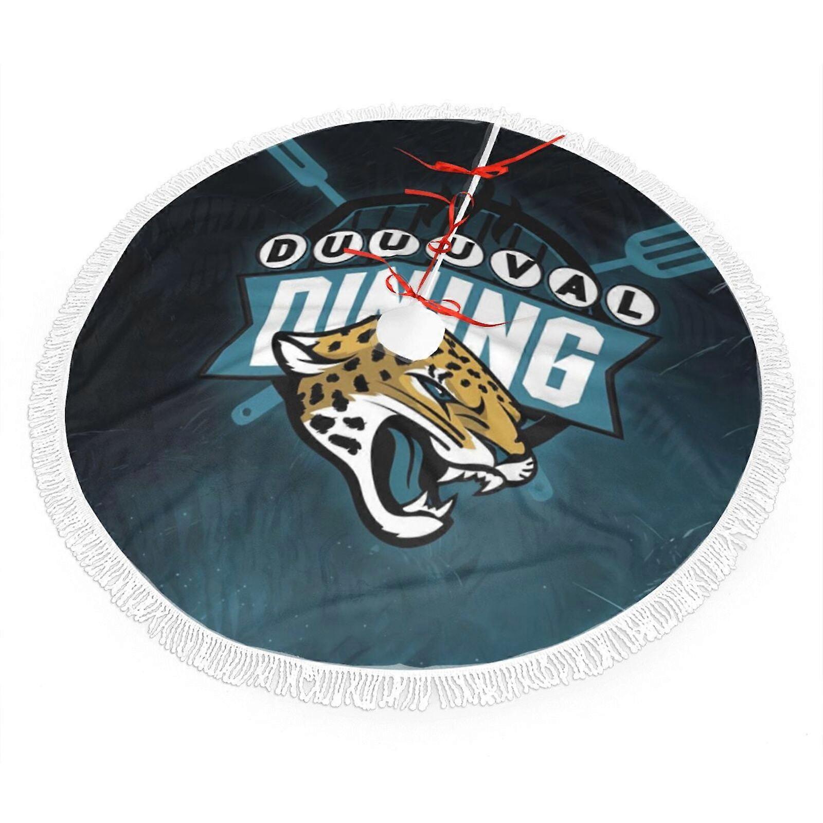 Jaguars Christmas Fringe Tree Skirt 30" 36" 48", Football Team Color Plush Decor, Bright & Easy to Install, Great Gift for Fans