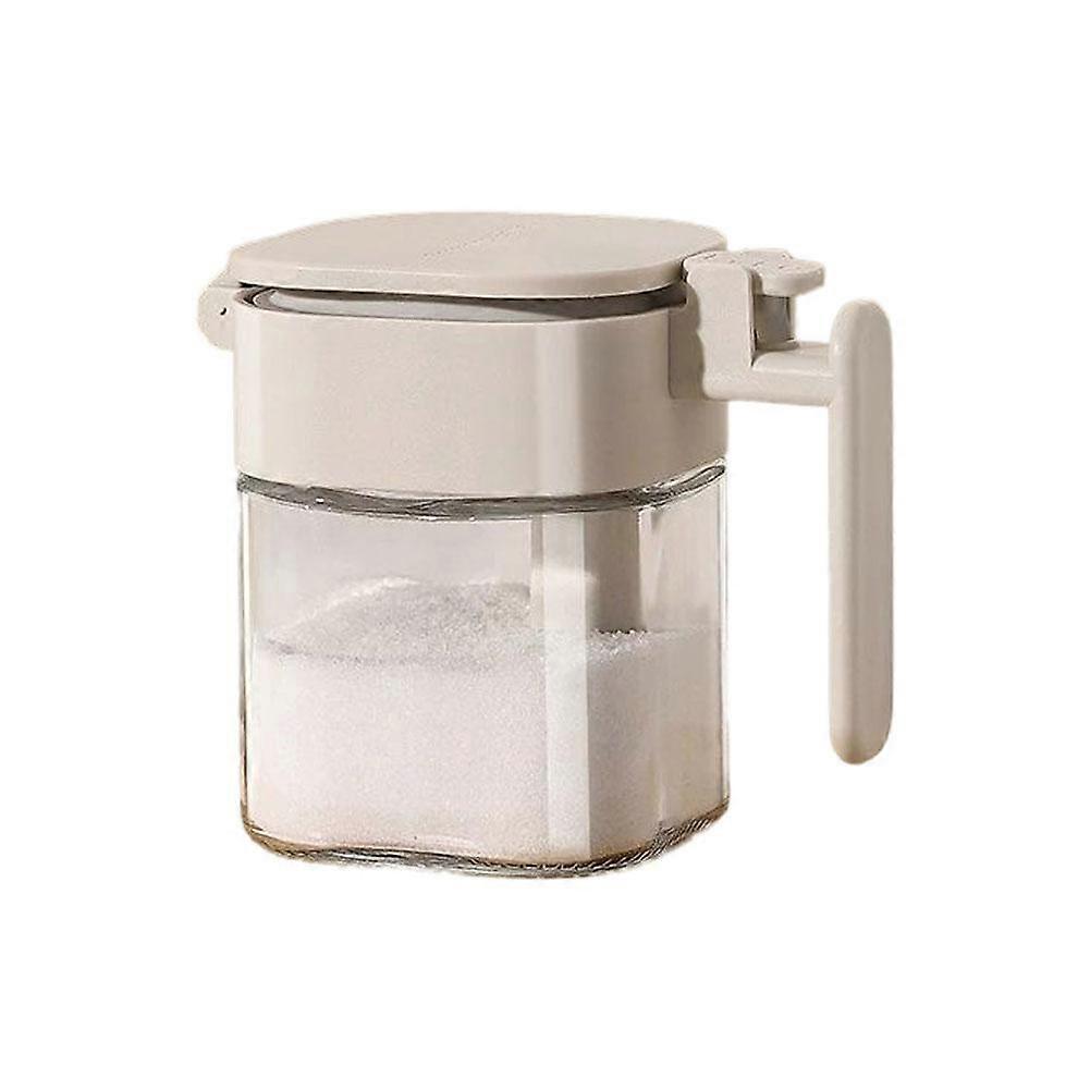 1PCS Glass Household Spice Jars For Sealed Condiment Container Kitchen Salt Pepper Seasoning Storage Bamboo Lid With Spoon Tools-Khaki lid