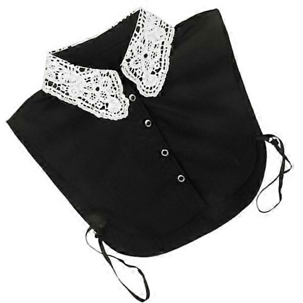 Women Floral Detachable Collar Half Shirt Blouse with Lace Black