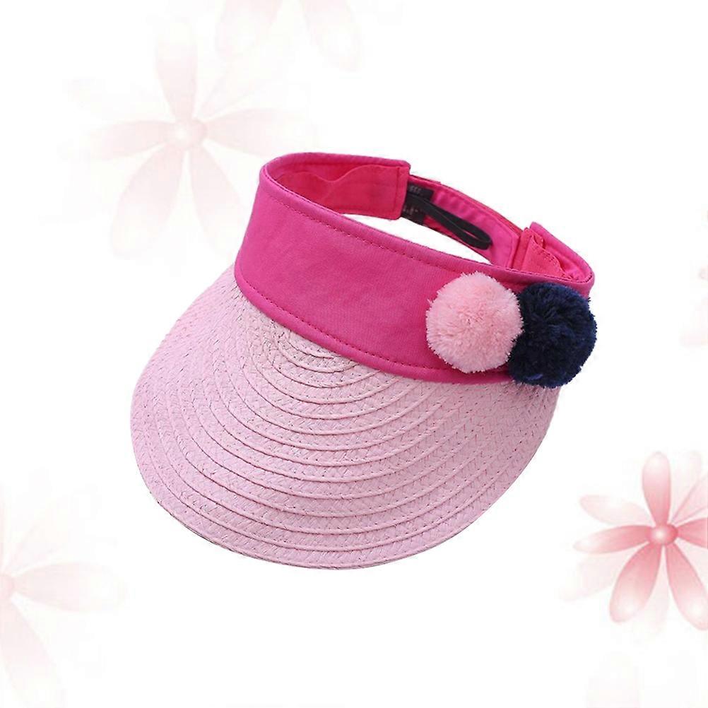 Kid Visor Sun Cap Wide Brim Hat with Plush Decor for Girl Pink