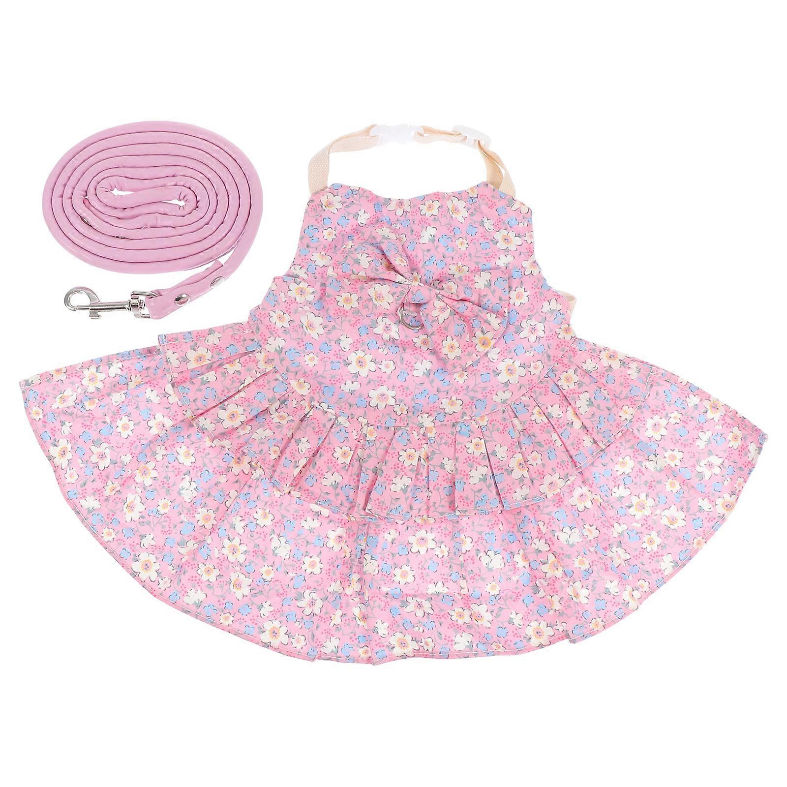Adorable Rabbit Costume 1 Set Rabbit Clothing Traction Rope Dress Pet Fashion M Size Pink Floral Pattern Protective Walking