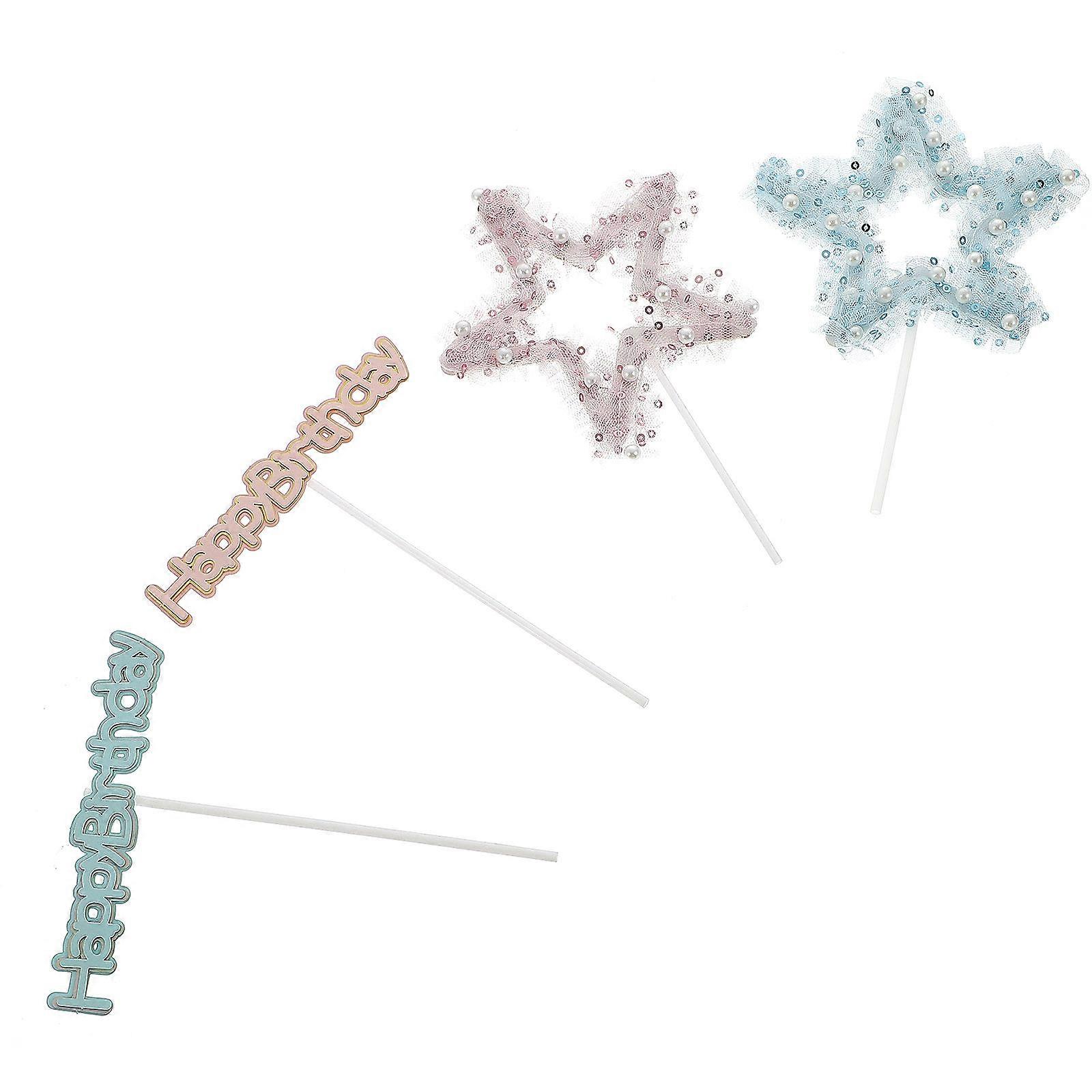 Cake Topper Birthday Design Mesh Pearl Star Decorations for 2Sets