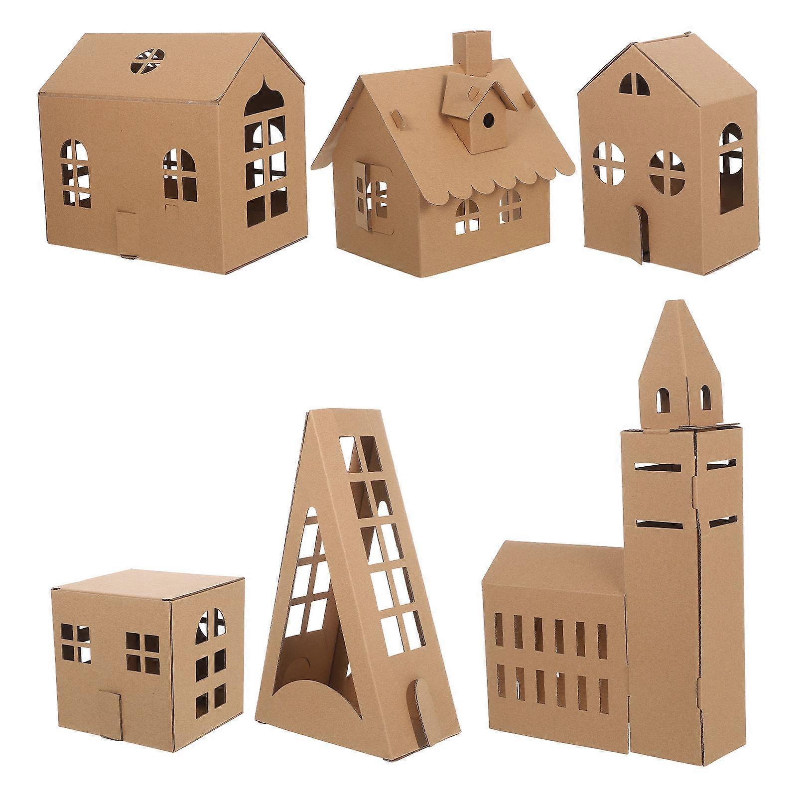 Miniature Cardboard House for Kids for Coloring and Crafting 6Pcs Set