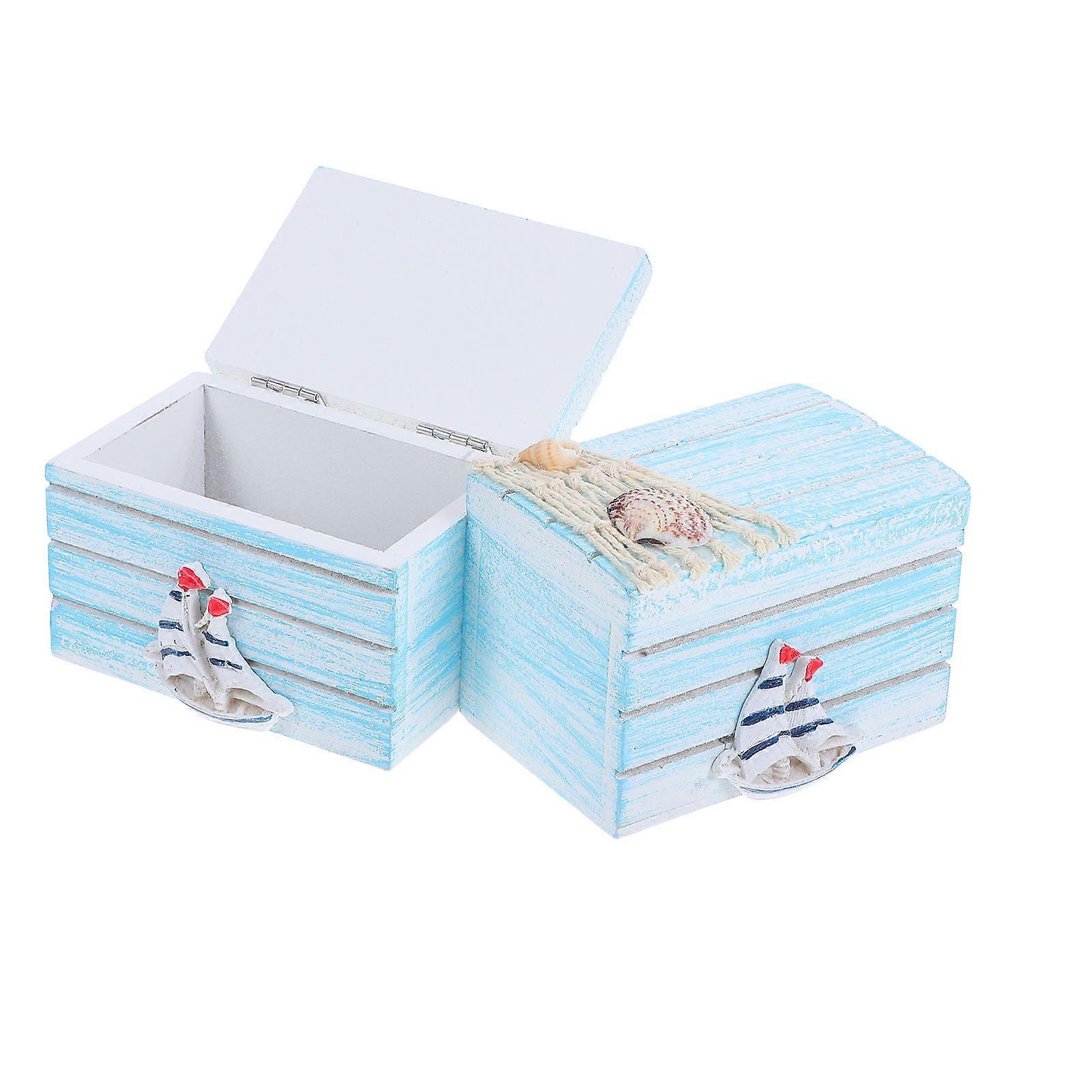 Coastal Decor Ocean Wood Box Wooden Jewelry Box for Keepsake 2Pcs Set