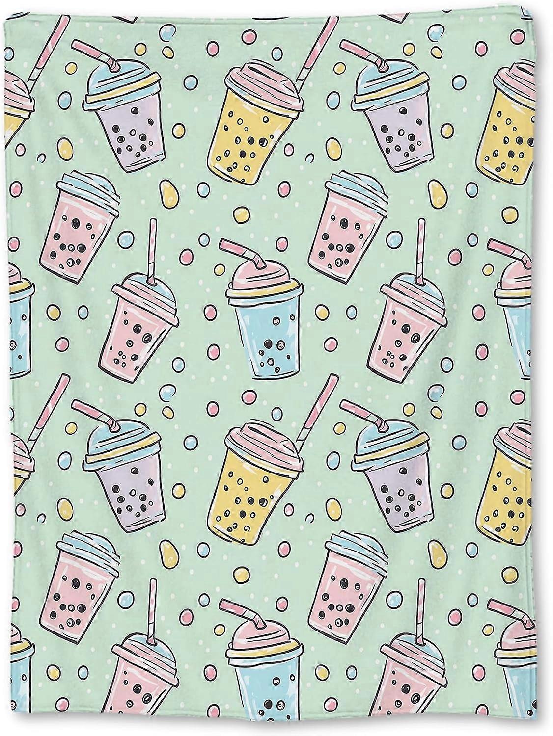 Cute Bubble Tea Blanket, Soft Cozy Flannel Throw for Couch, Bed, Travel, Living Room & Home Decor, Lightweight Fuzzy Warm 60×50 in