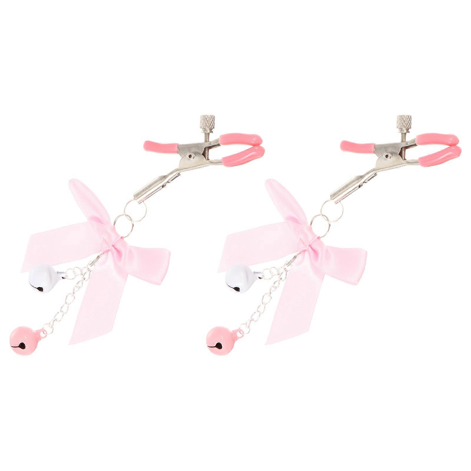 Bowknot Nipples Clips for Flirting 1Pair Pink Aluminum Alloy with Bells