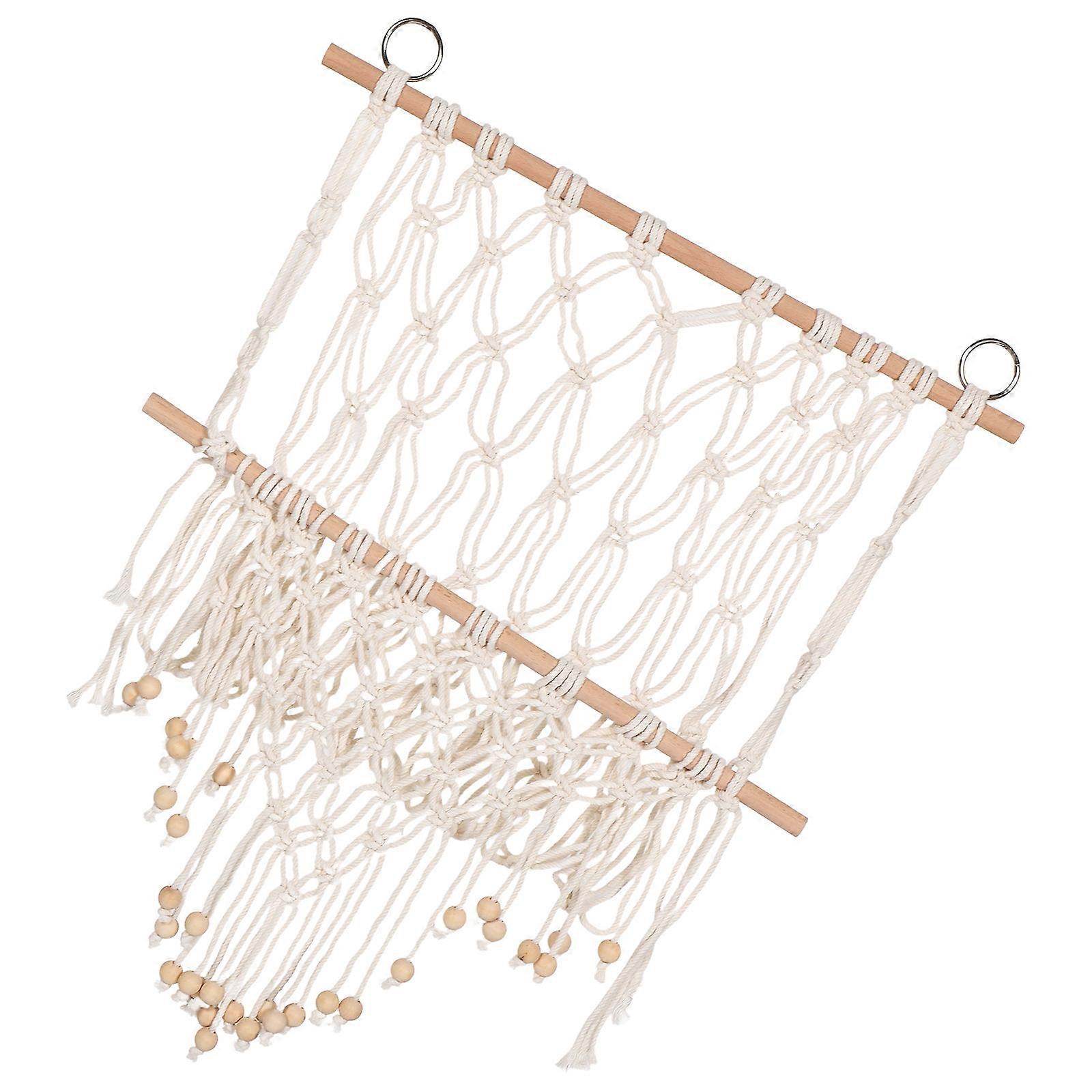 Beige Storage Dual-Layer Design Toy Organization for Kids Room Decor and Nursery Decor Made of Cotton Rope and Wood 1Pcs