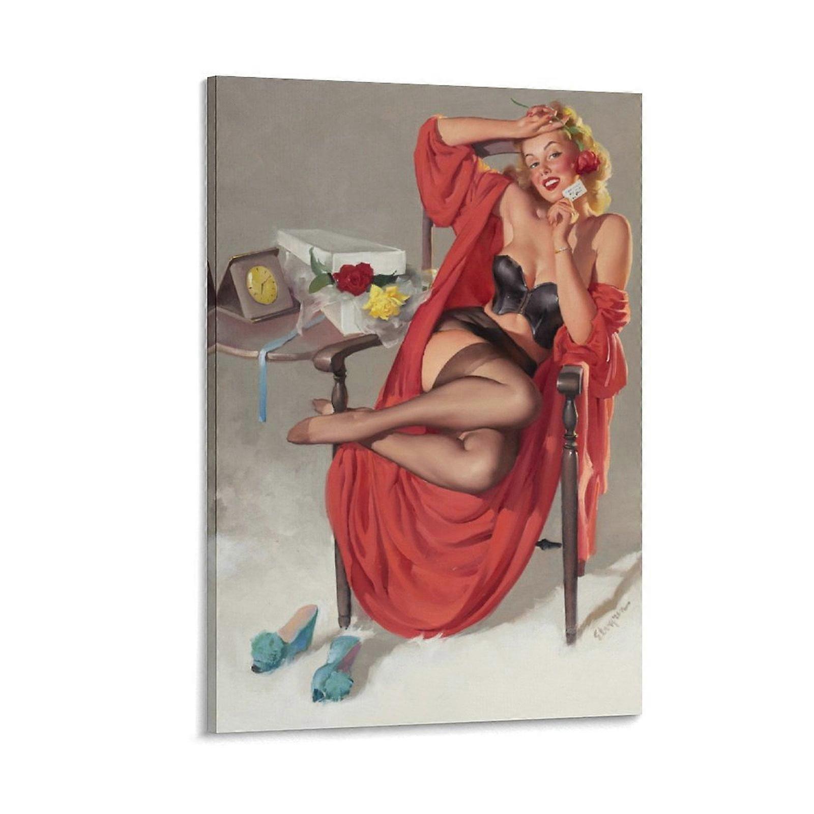 Gil Elvgren 1950s Pin-Up Girl Art Print (48) Canvas Poster, 16x24inch, Vintage Wall Art, Home Decor, Gift