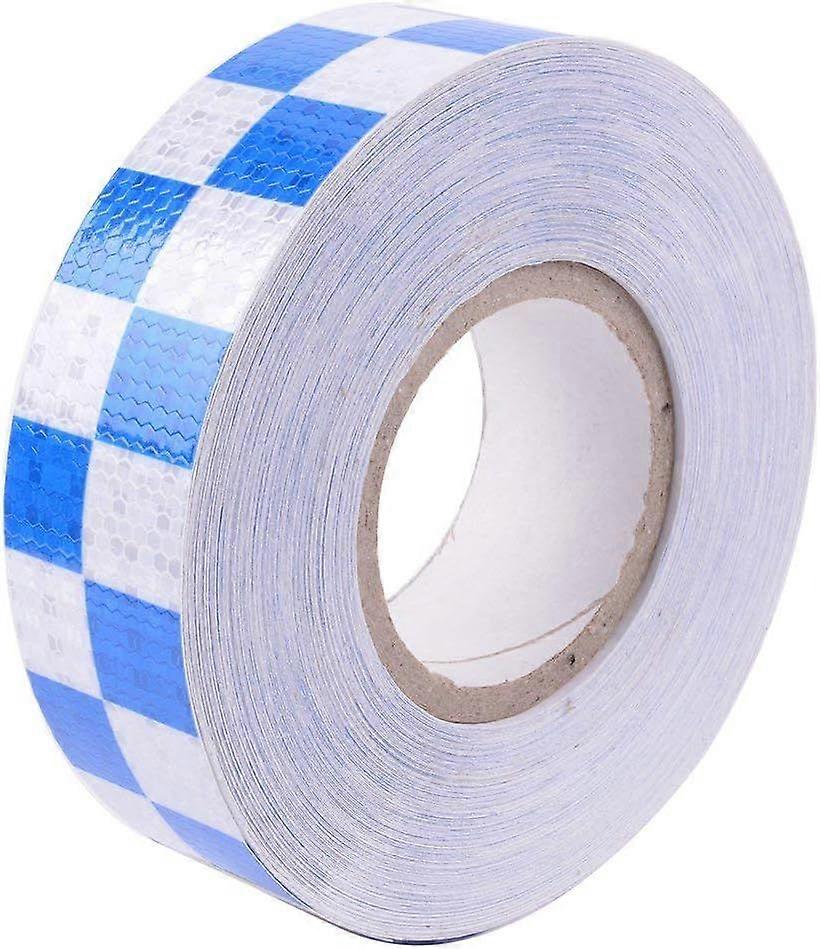Reflective Safety Tape ft Blue White Night Warning Caution Adhesive Sharpness Checker Marking Sticker Self-adhesive 5CM x 25M