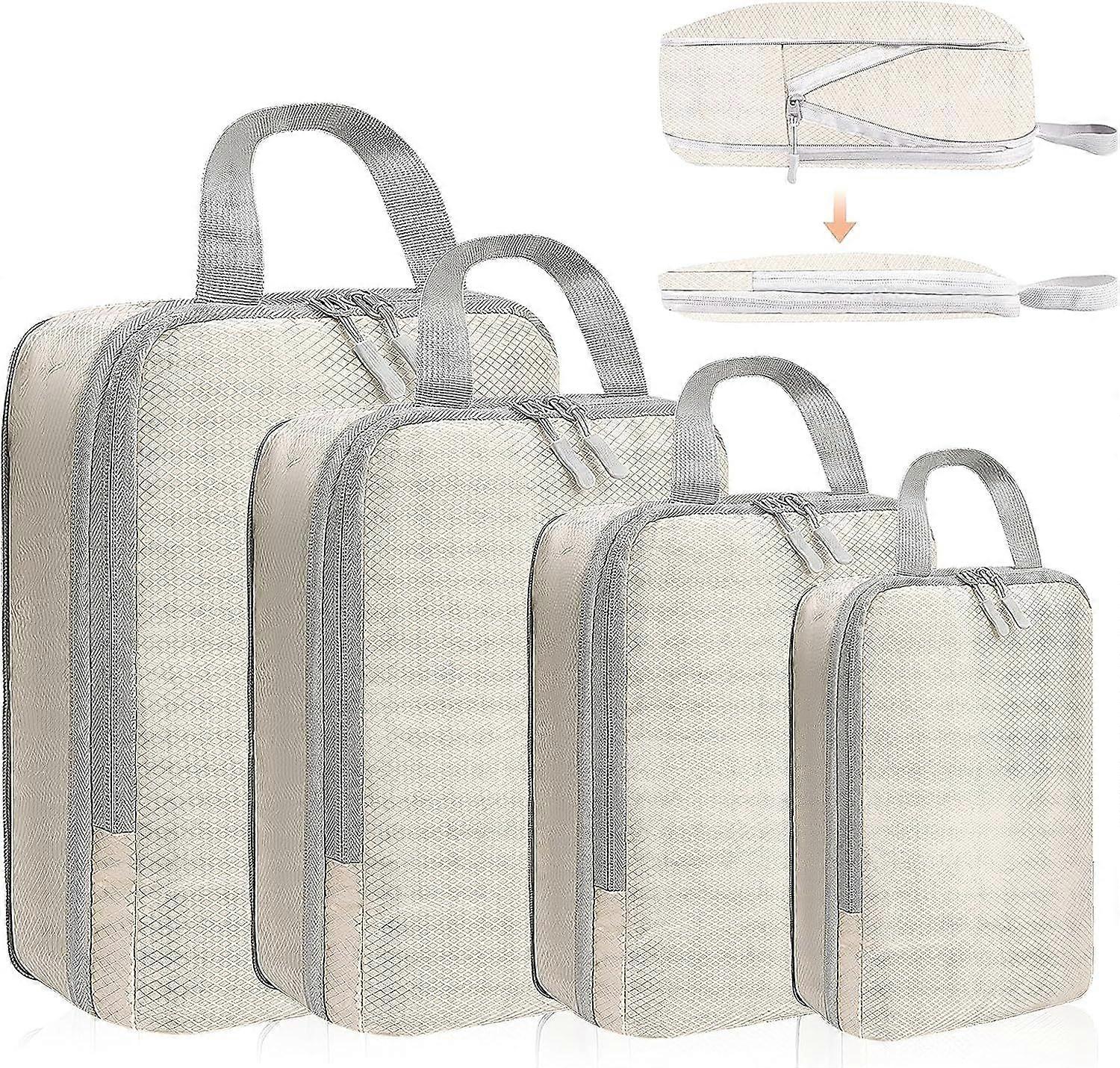 Luggage Compression Bag, Packing Cubes Compression Travel Organizer Ultralight, Suitcase Storage Can Meet All Your Travel Needs (Beige, 4 pieces)