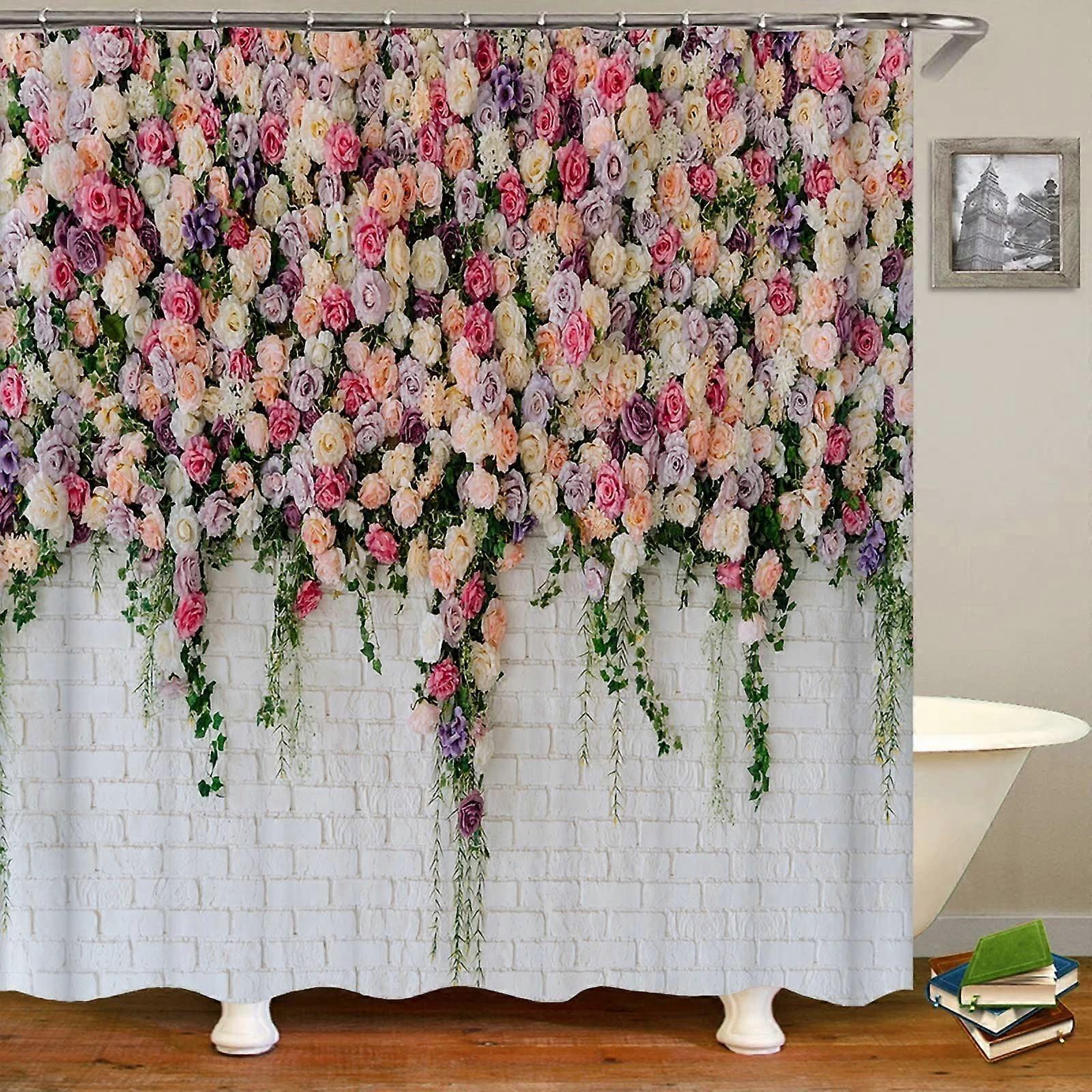 Home decoration shower curtain bathroom curtain 3D beautiful flowers printing waterproof polyester curtain with hook 240x180cm