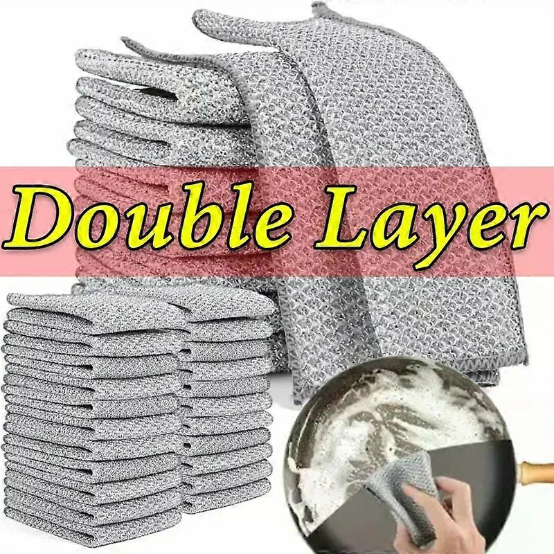 100/1pcs Thickened Steel Wire Cleaning Cloth Non-Scratch Double-layer Microfiber Mesh Wire Rags Washing Dishcloth Kitchen Towel