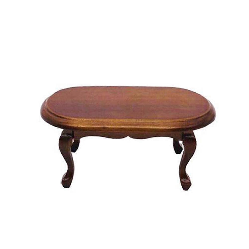 Miniature Dollhouse Furniture Oval Table Dark Brown Display For Kids Home Art Enhancement Wooden Design 1Pcs