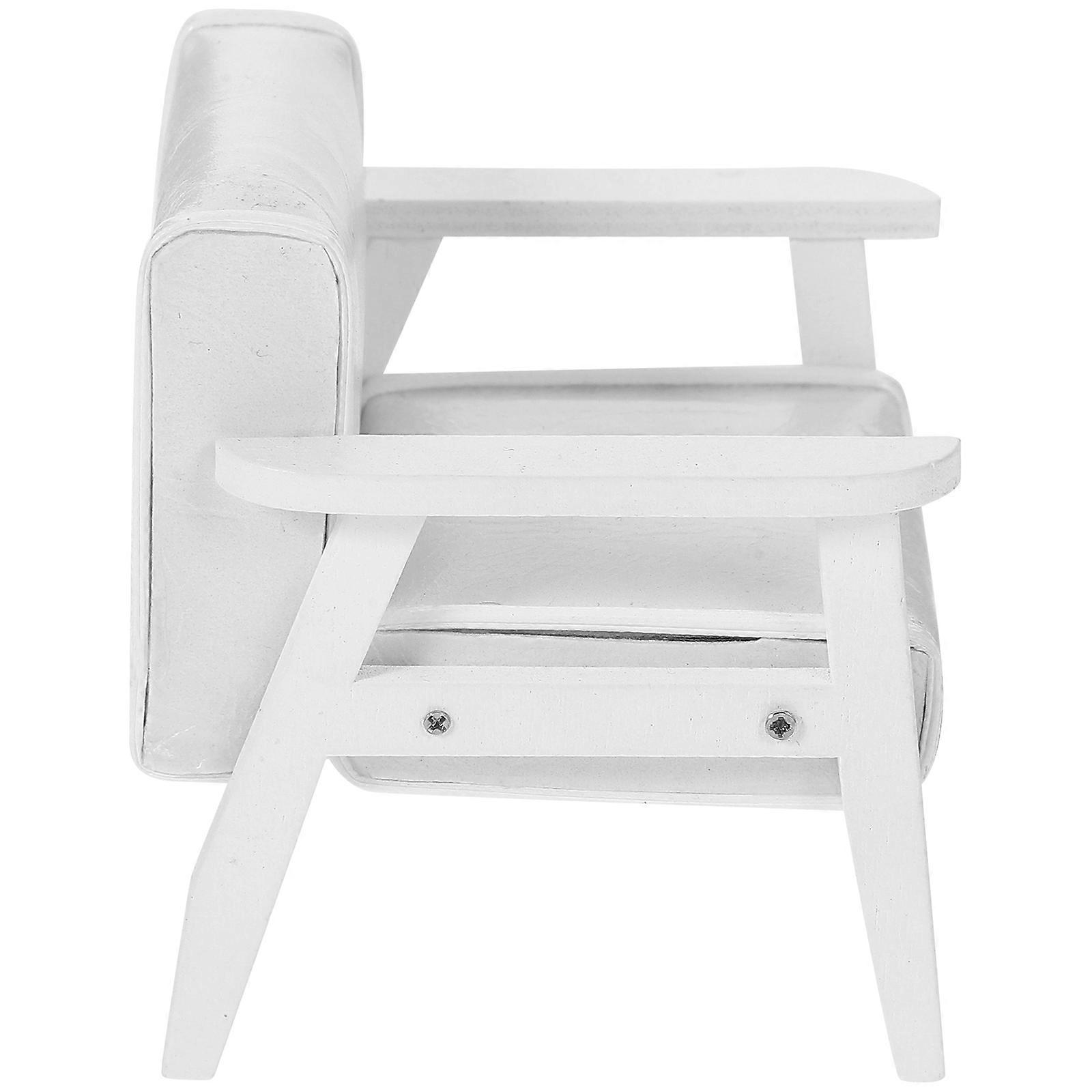 Miniature Wooden Sofa Chair for Doll House 2Pcs White Tiny Furniture Model