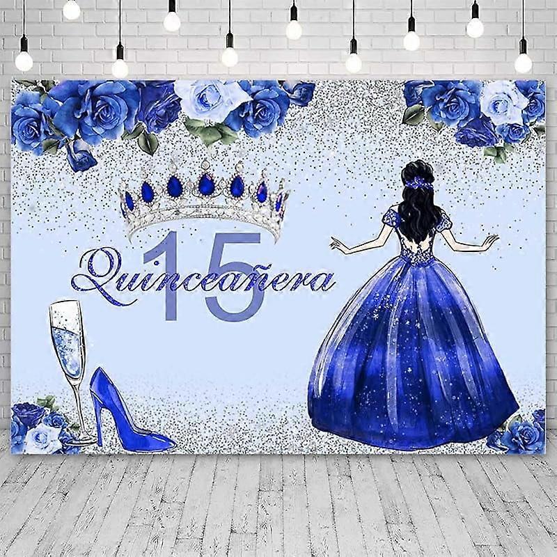 Quinceanera 15th Backdrop Burgundy Red Flowers Golden Crown, compatible with Mexico 15th Birthday Party, Photo Booth Studio Props