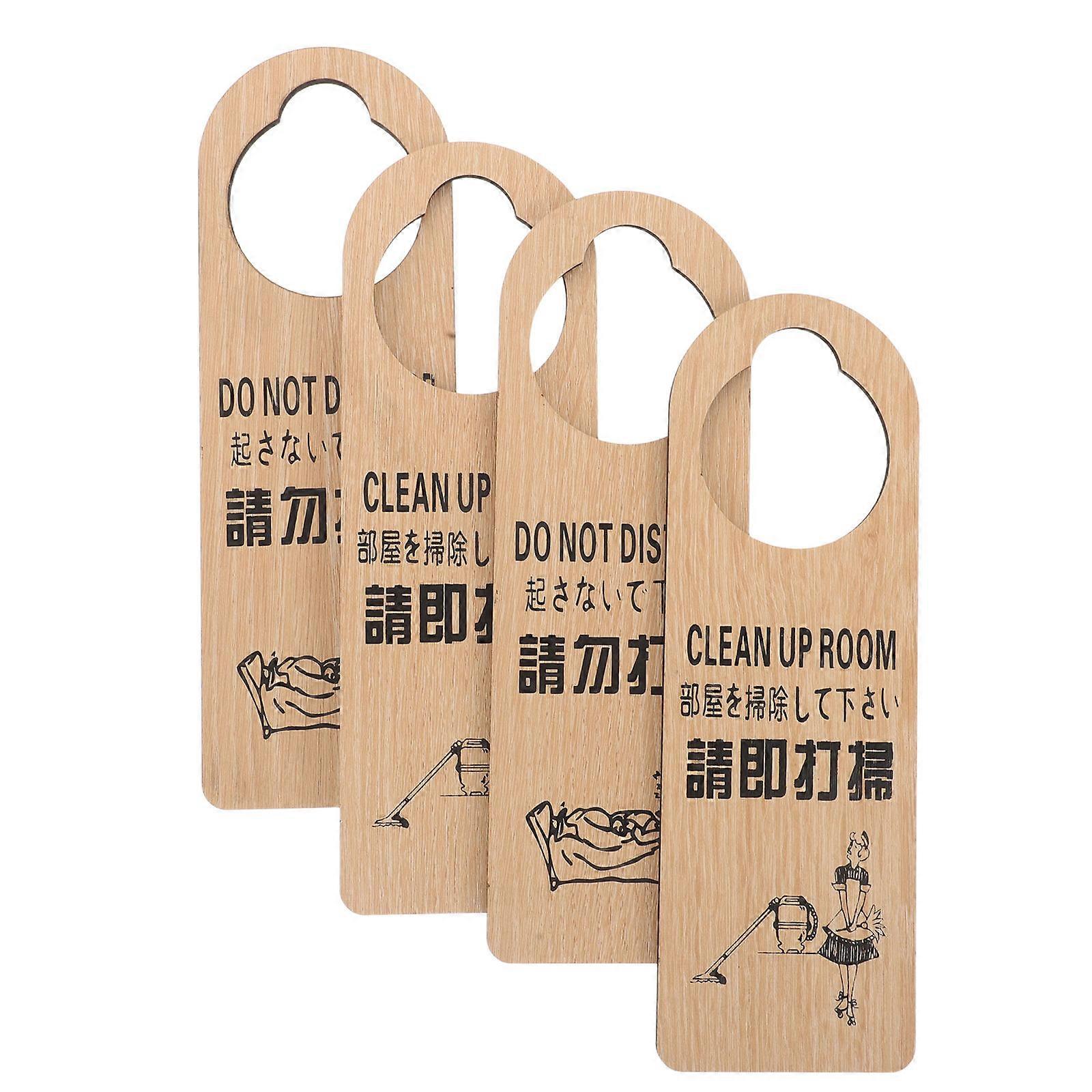 Hotel Door Hanger Rustic Wood Door Sign for Room Status Light Yellow Material with Double Face 4Pcs