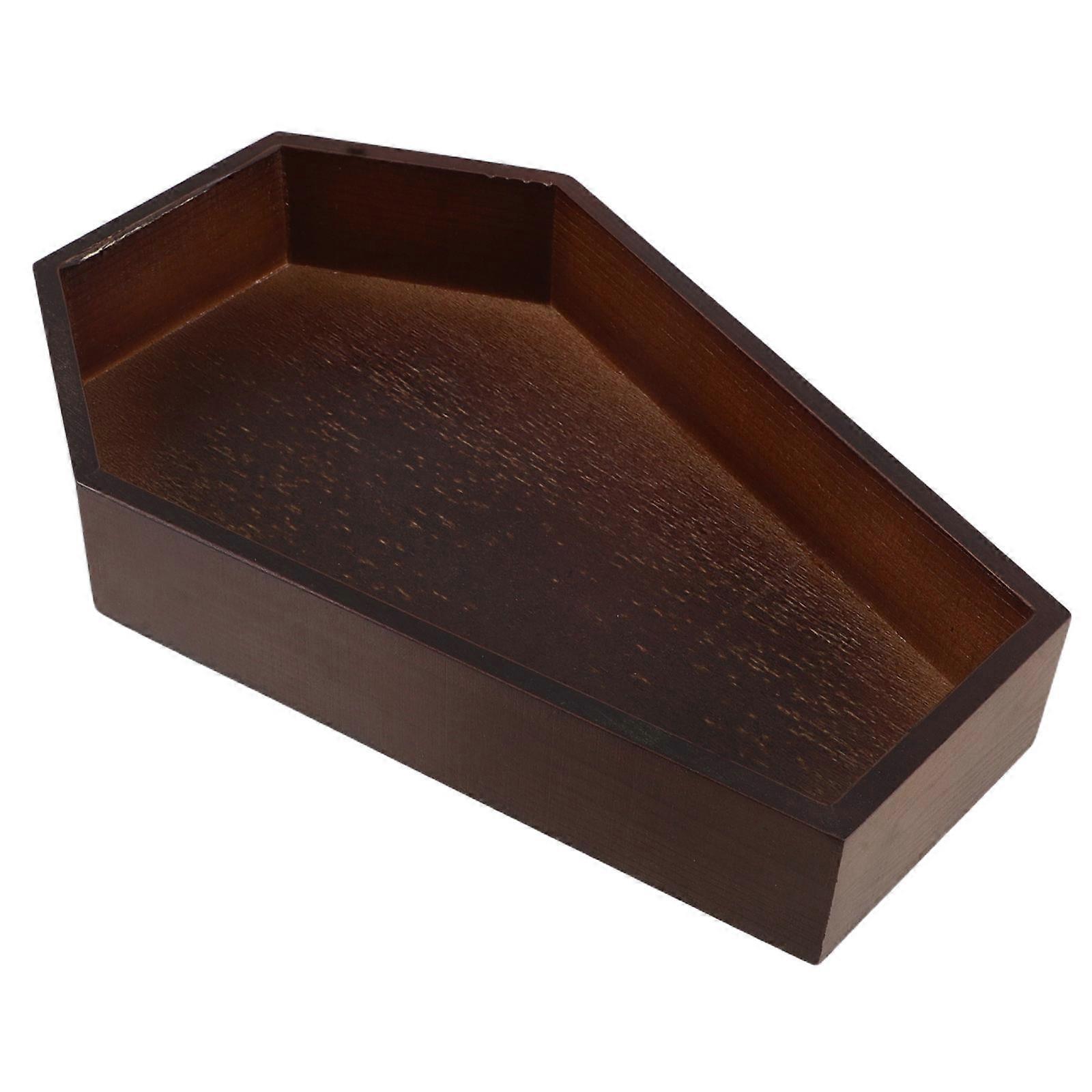 Halloween Tray Coffin Wooden Party Tray for Candy and Spooky Decor Brown Wood 1Pcs