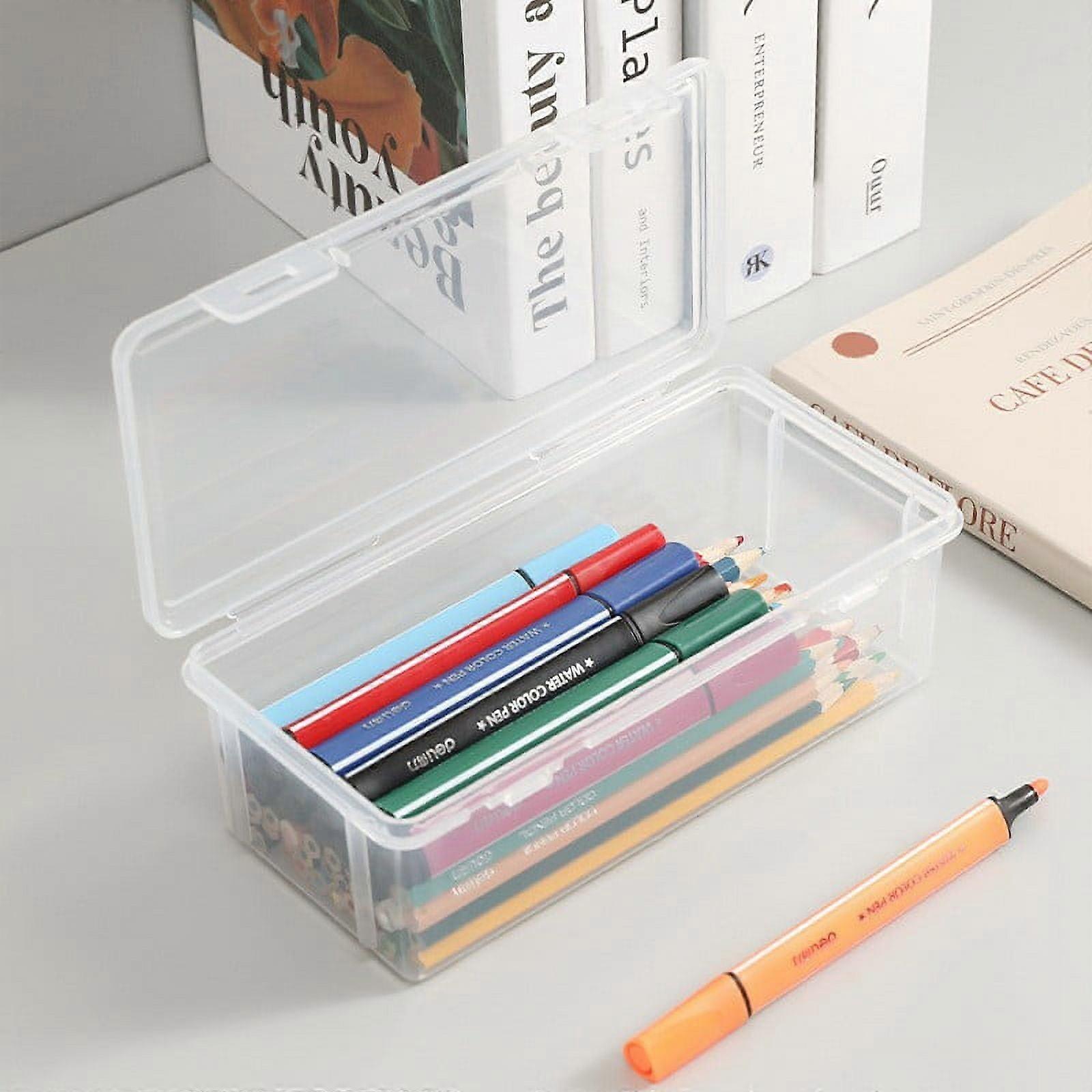 Back to School Clearance! Fnyoxu Extra Large Plastic Pencil Box, Stackable & Translucent, Compatible with Gel Pens, Erasers, Tape, Pencils, Markers