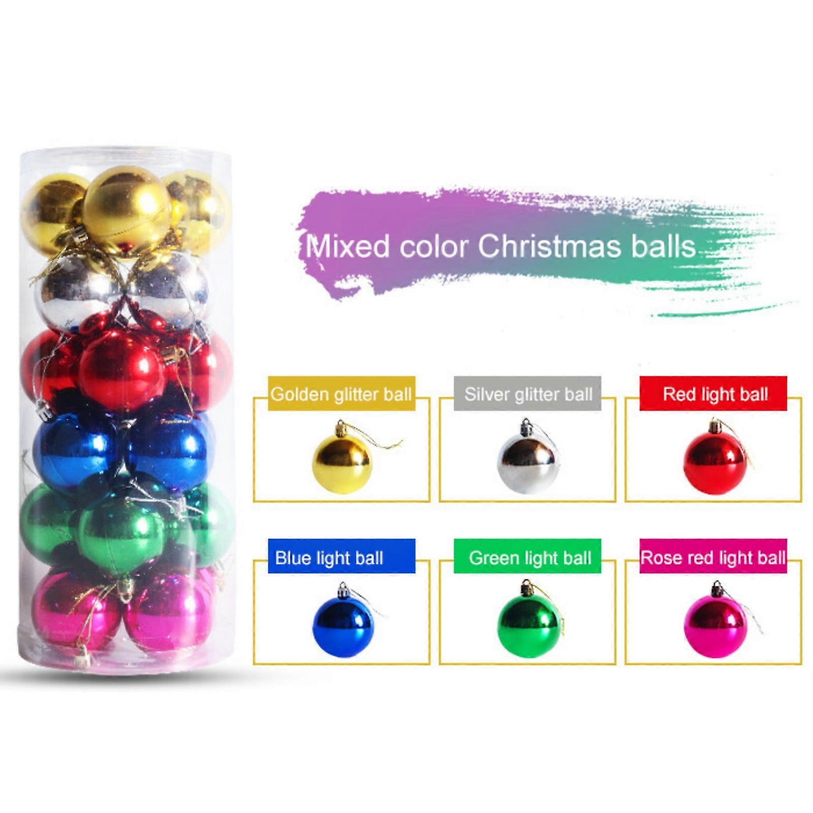 24Pcs Christmas Balls Assorted Pack, Thickened Shatterproof Sphere Electroplated Xmas Tree Hanging Ball Pendants Xmas Balls mix color 6cm