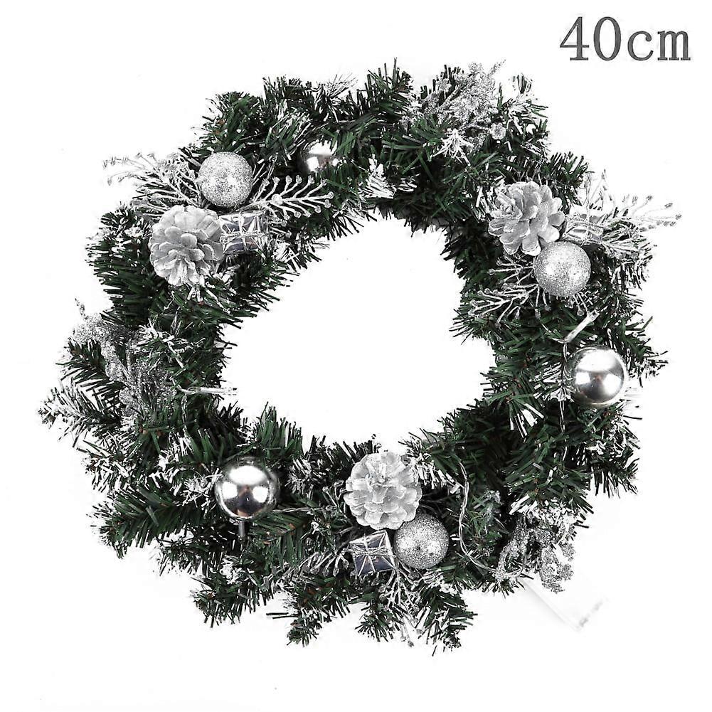 Norbi LED Christmas Wreath, Front Door Hanging Garland with Battery Powered LED Light String,Holidays Home Decoration,Silver,40cm