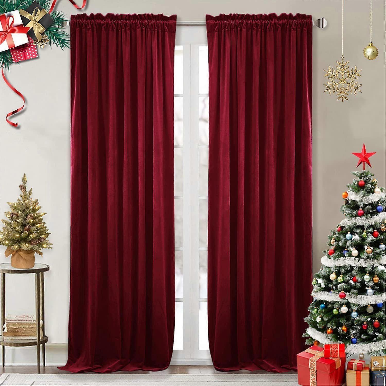 Theater Red Velvet Curtains Christmas Curtains Super Soft Insulated Curtains